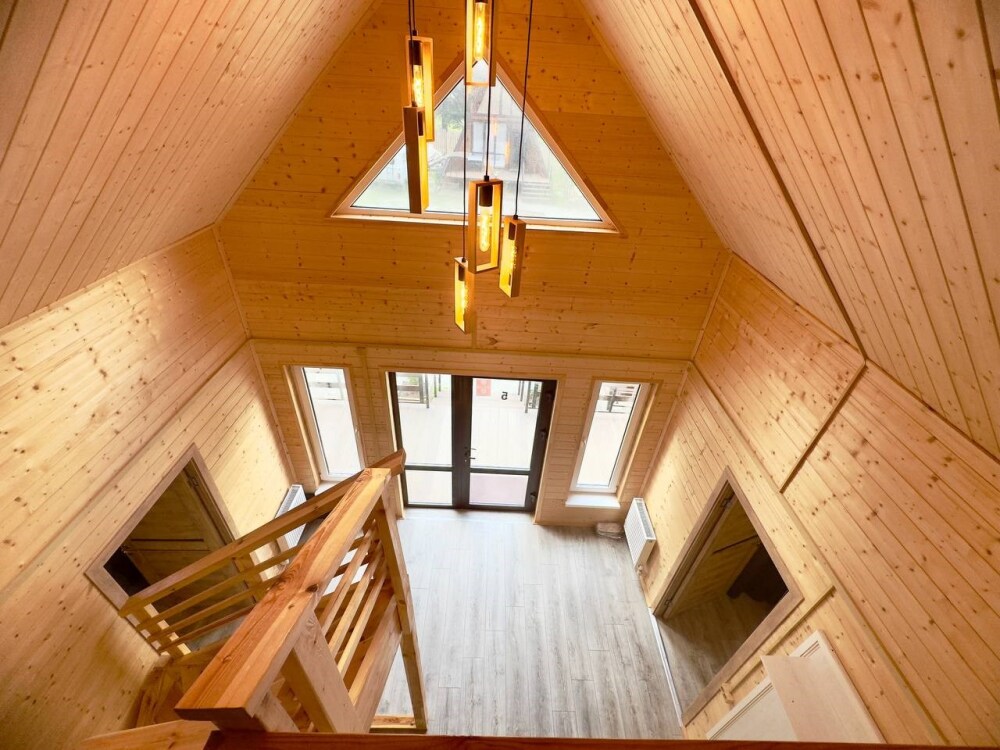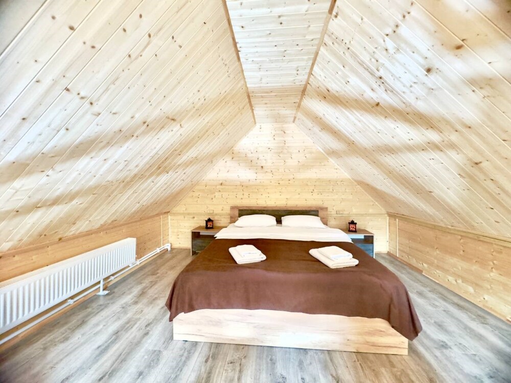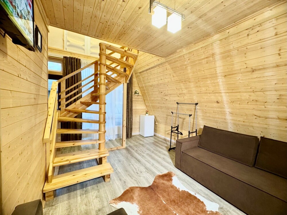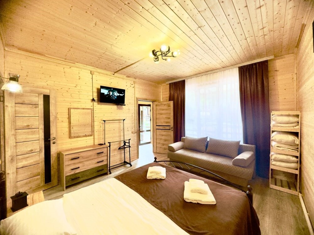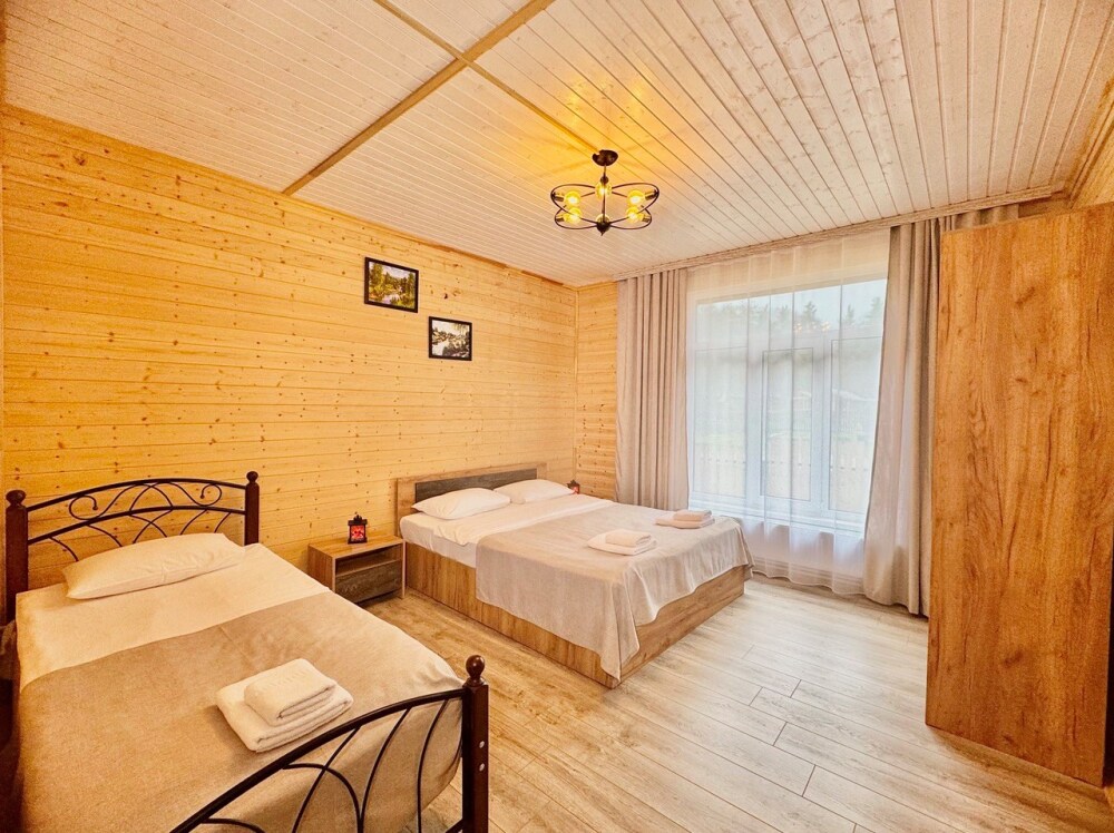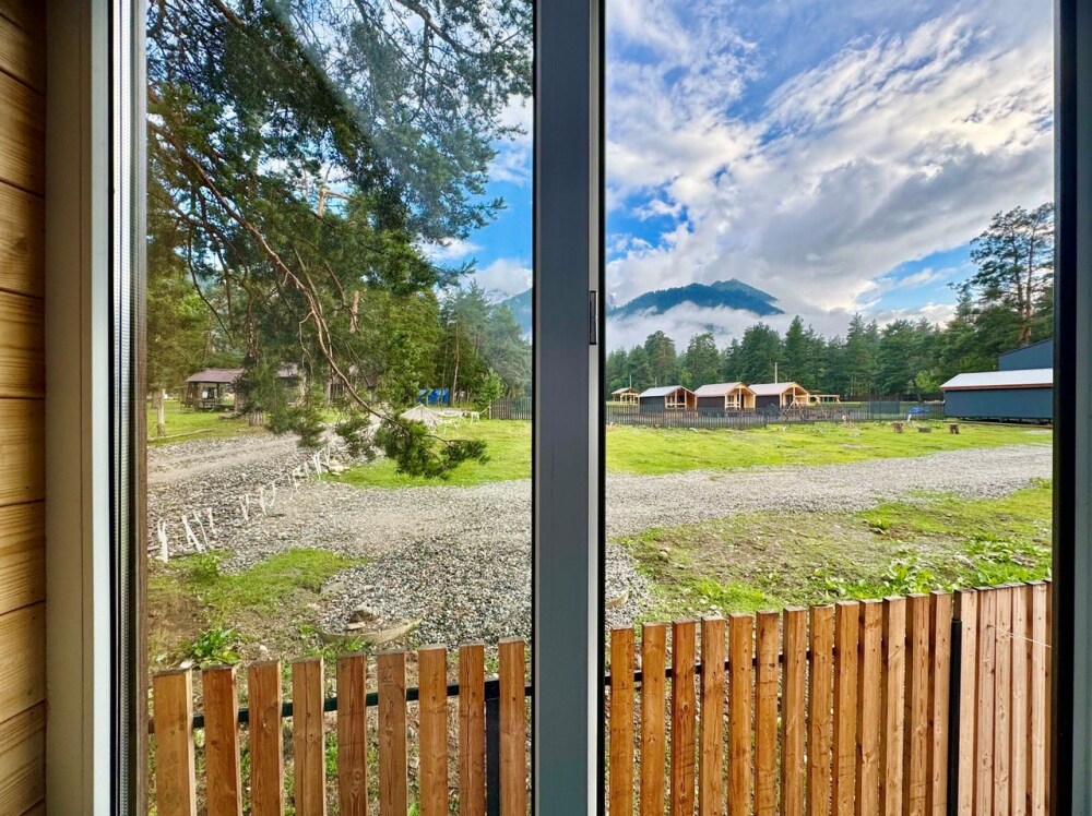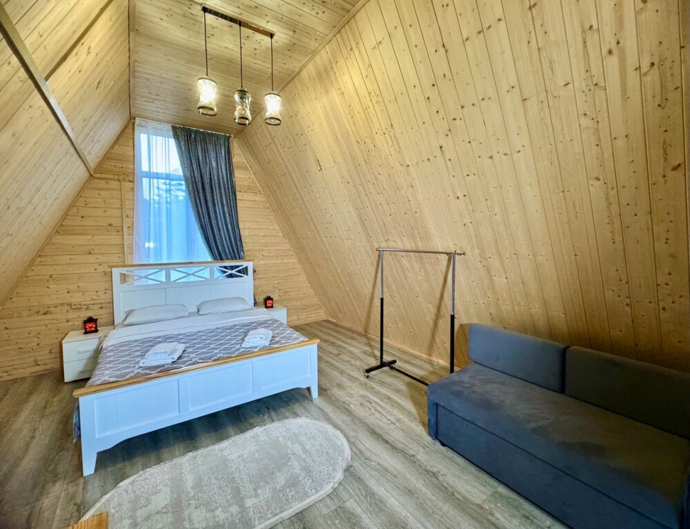 На благоустроенной территории находится комплекс из 9 разных по стилю и площади эко-домов и 4 номера категории «Стандарт» с зонами отдыха на террасах. Вам предлагают уютные современные домики: треугольные А-фреймы, многокомнатные шале, 2-этажные бунгало c 3-мя спальнями, 3-этажный дом «Премиум» с камином.