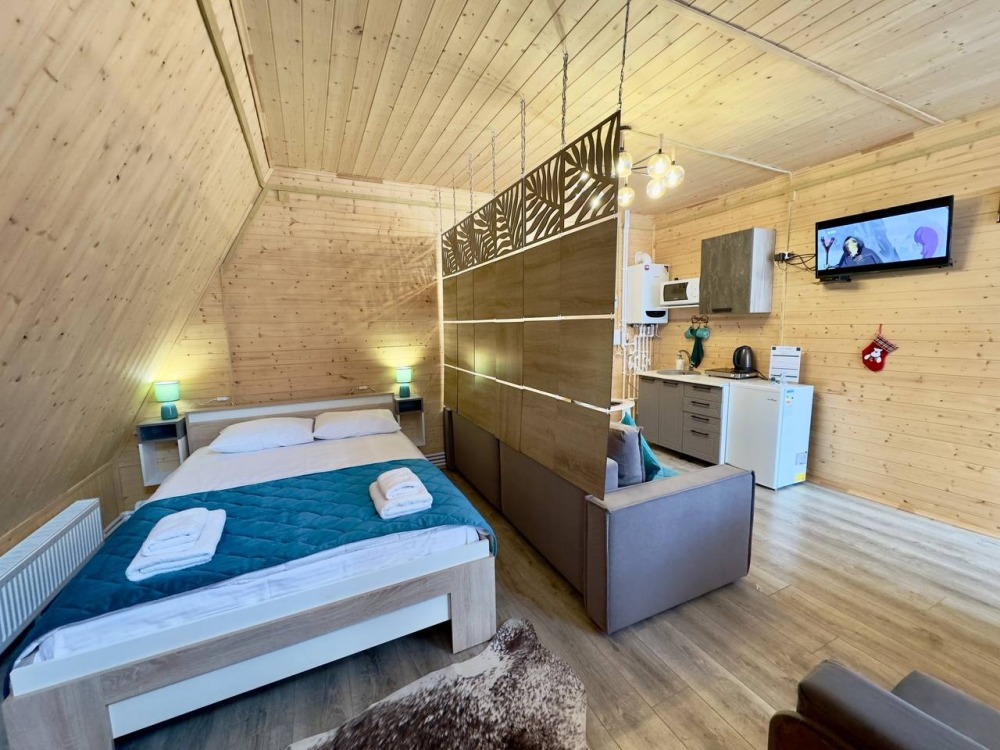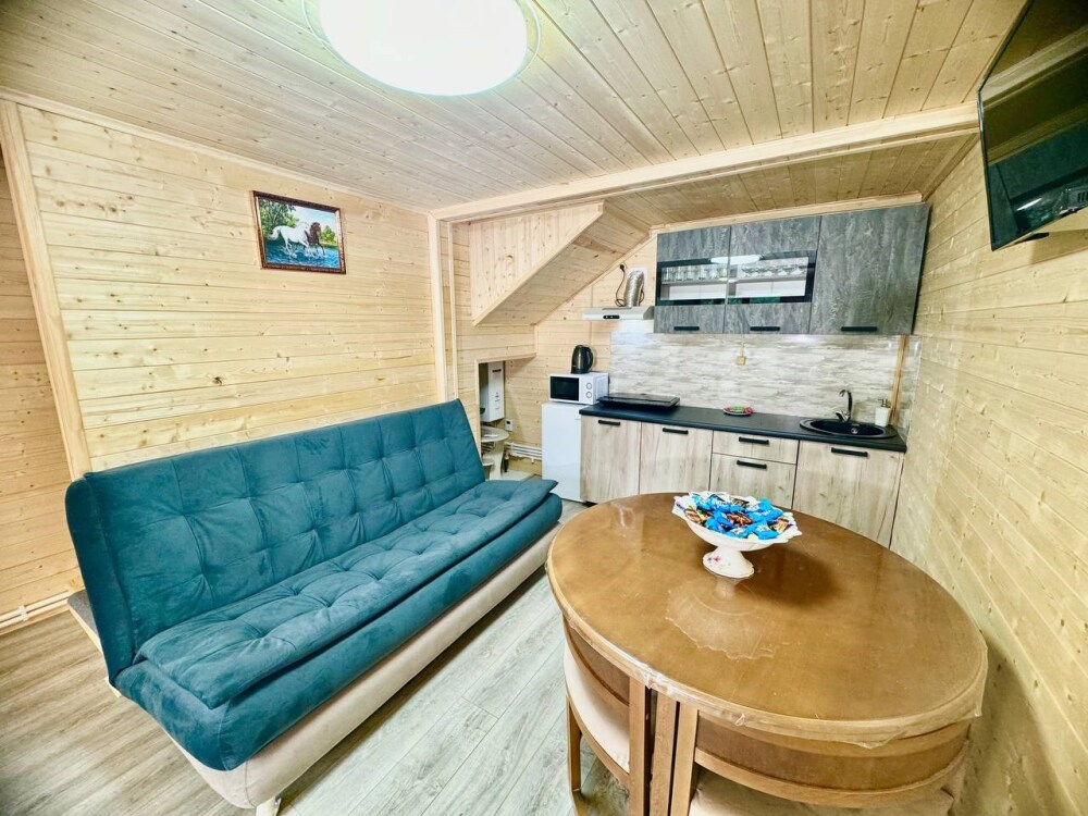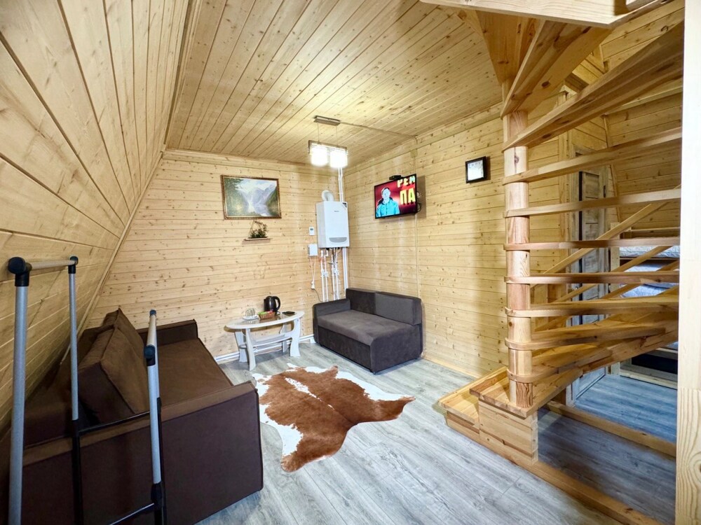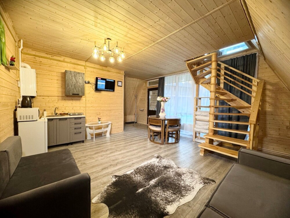 Гостиная-кухня-спальня и спальня на 2-ом этаже, санузел.