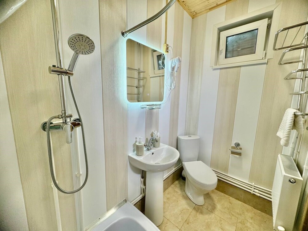 2 санузла: душ, раковина, туалет, базовые гигиенические средства (мыло, шампунь, гель для душа, зубные щётки).