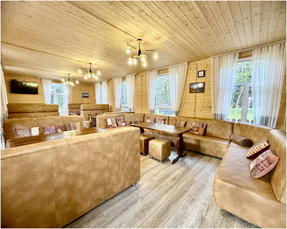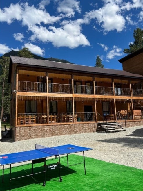 - Услуги (платно): кафе «Tram house» с вкуснейшими комплексными завтраками/обедами/ужинами (в 10 м), открытый бассейн с подогревом 13*4м (в 15 м), баня на 10 человек с чаном (в 15 м), прачка на территории базы, трансфер до горнолыжных трасс в зимний сезон.
