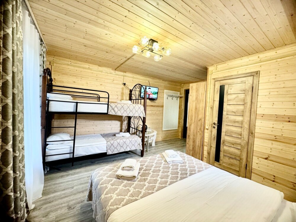 Спальные места: 2-спальная кровать и 2-ярусная кровать.