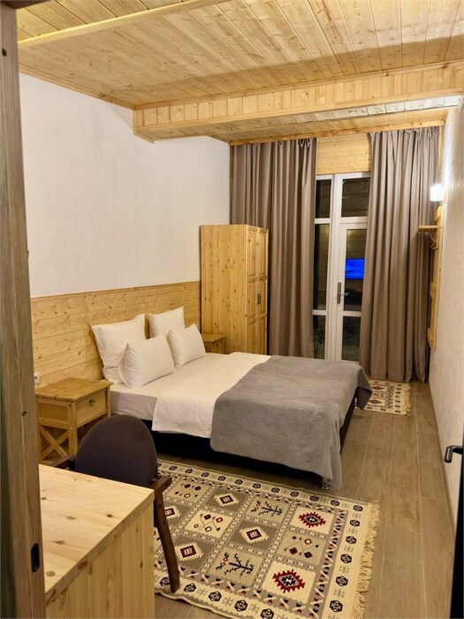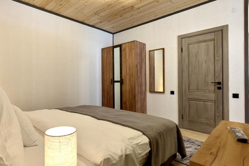 Коттедж расположен на лицевой стороне базы отдыха, с отличным видом и личным двориком с мангальной зоной. Здесь гости смогут ощутить теплоту и уют швейцарского домика в горах Архыза. Каждый коттедж оснащен всем необходимым до мелочей, удобные матрасы, лучшее постельное белье, собственное газовое отопление от персонального котла, персональная кухня оснащенная всем необходимым, балкон с прекрасным видом и мебелью и многое другое.