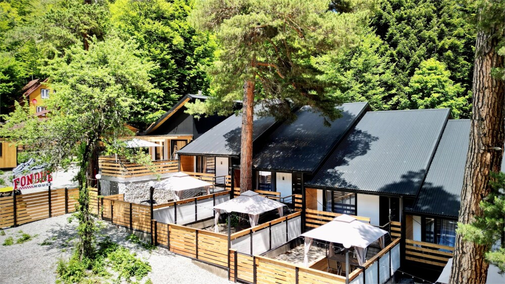 База отдыха «Fondue House» - это больше, чем просто база отдыха в Архызе. Это место, где горы встречаются с тишиной леса, где день начинается с пения птиц, а заканчивается паром бани под звёздами. База отдыха в тихом лесу, но не в глуши: до канатных дорог 7 км или 10 минут на машине. Асфальтированная дорога до наших ворот.
