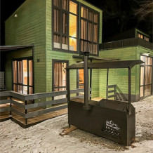 - беседка с очагом и качелями по кругу - наш любимый вечерний уголок: в центре - открытый очаг, вокруг - качели вместо скамеек;