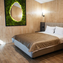Комфортабельный номер с классическим европейским интерьером. С видом на хвойный лес. Оборудованный одной двуспальной кроватью и раздвижным креслом.