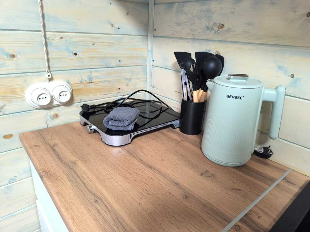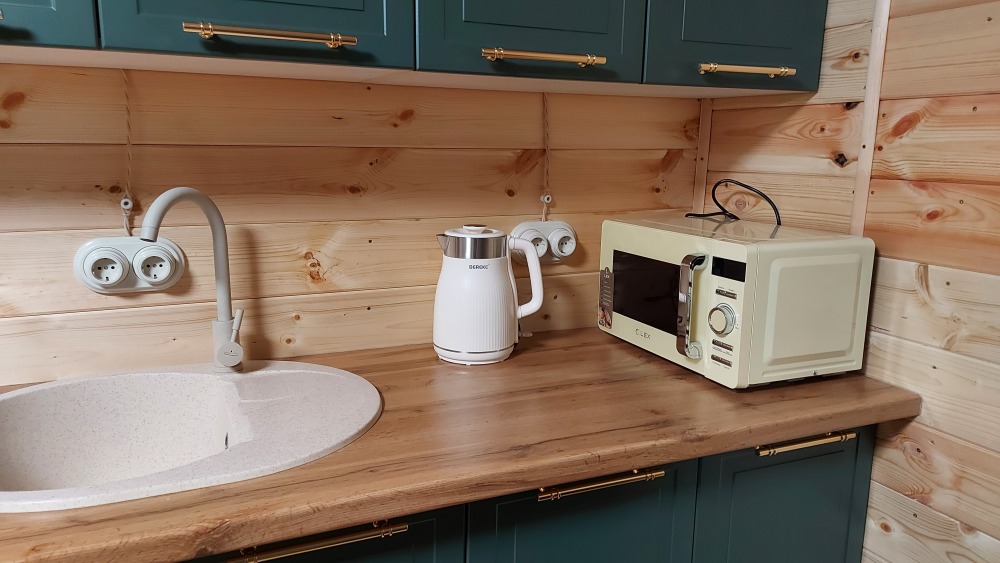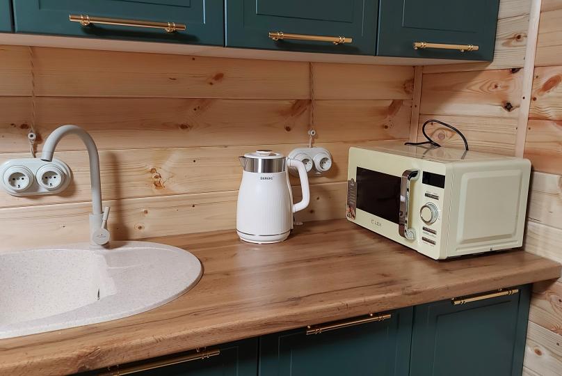 К услугам гостей на территории есть мангальная зона с принадлежностями для барбекю, баня и банный чан. Личный автомобиль можно оставить рядом на парковке с видеонаблюдением.