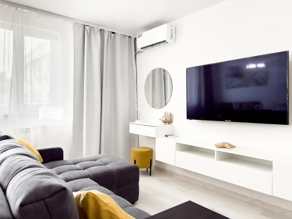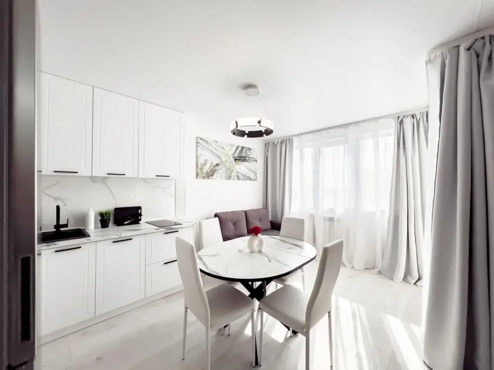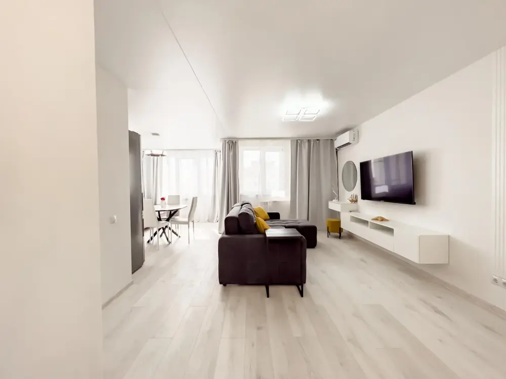 В апартаментах все удобства и комфорт для проживания: кондиционер в каждой комнате. Кухня оборудована всем необходимым: посуда, чайник, плита, стиральная машина, микроволновая печь, холодильник. Постельное белье, полотенца - все новое.