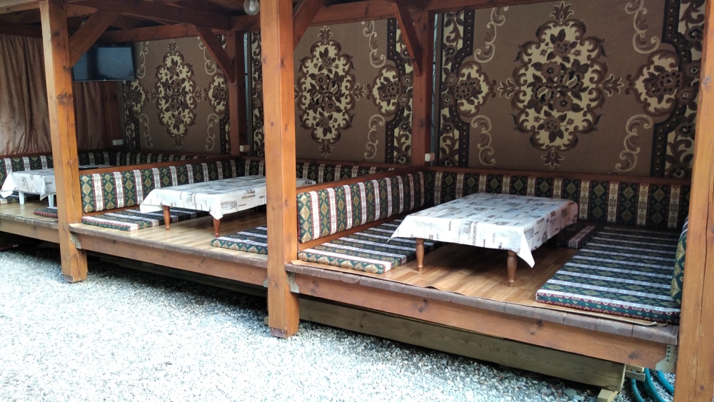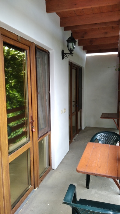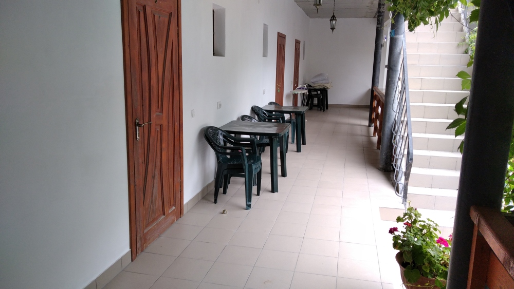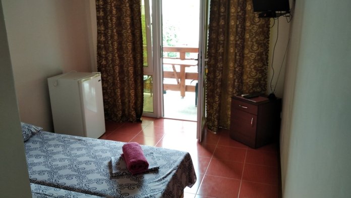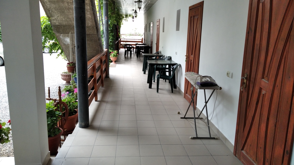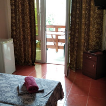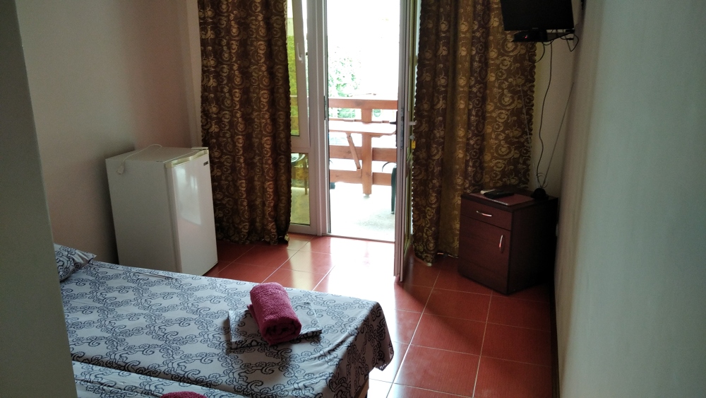 В номерах душевая, с/у, кондиционер, ТВ, холодильник, стол со стульями (на террасе). Вход в номера с просторной террасы.