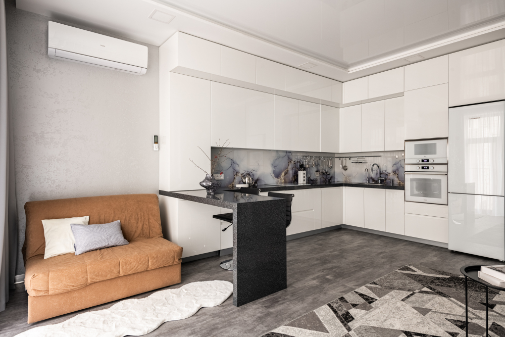 - Кухня-гостиная с дополнительным спальным местом - ортопедическим диваном. Кухня оборудована всей необходимой посудой и техникой.