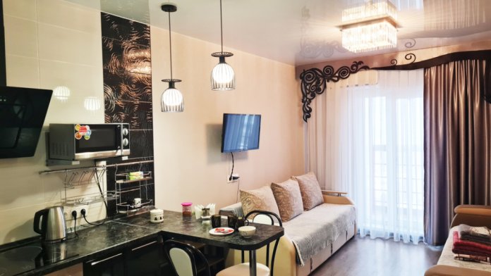 В Вашем распоряжении будет все бесплатно: Wi-Fi, чай, кофе, шоколад, конфеты, индивидуальные средства гигиены, чистый комплект постельного белья и полотенец, телевизор с кабельным ТВ на 150 каналов, кондиционер, вся необходимая бытовая техника, застекленный балкон с умопомрачительным видом на город с высоты птичьего полета. При наличии мест есть охраняемая парковка на территории.