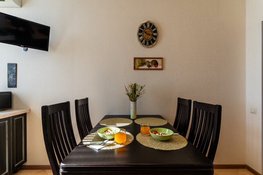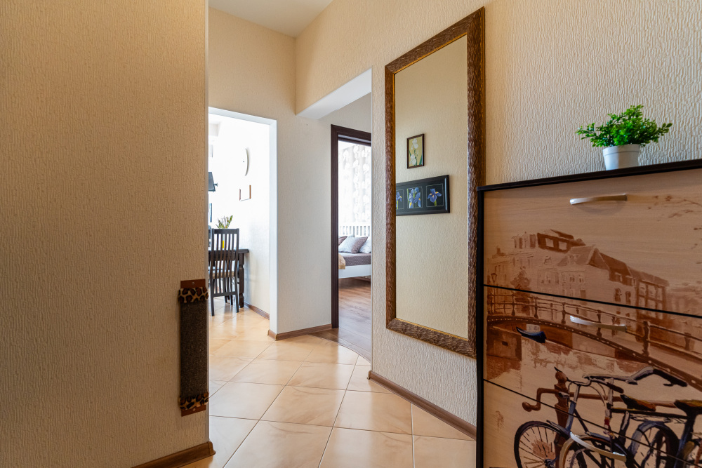 B квартире новый качественный ремонт, красивая посуда и элементы декора для вашего уюта и красивых фотографий. Размещение до 4 человек. Комната с двуспальной кроватью, комната с раскладным двуспальным диваном. Мы рады гостям с детьми. Также в квартире есть кухня с микроволновой печью и всей необходимой техникой. Вода круглосуточно.