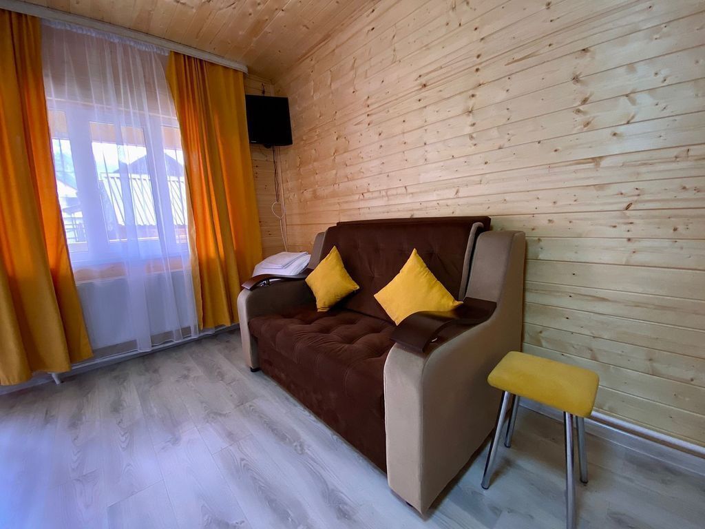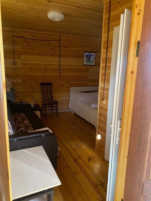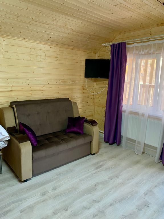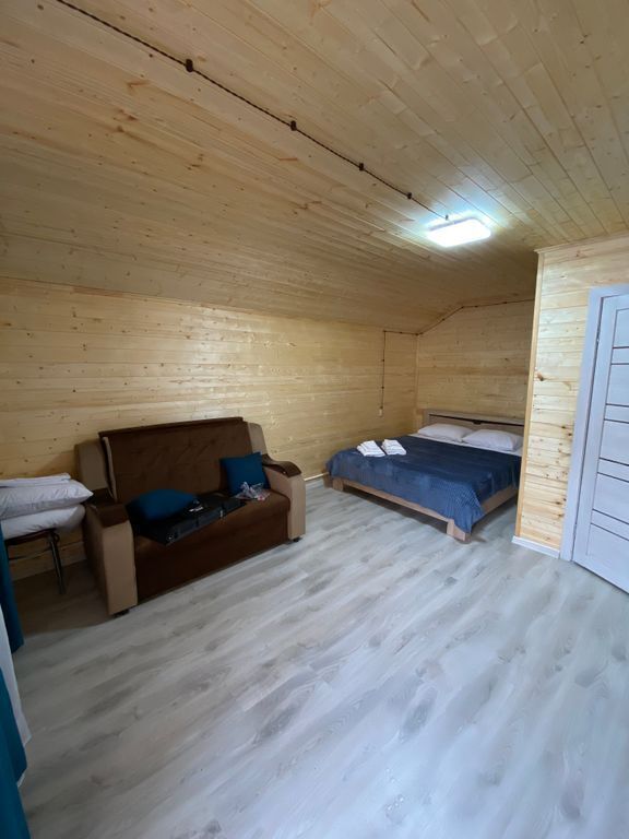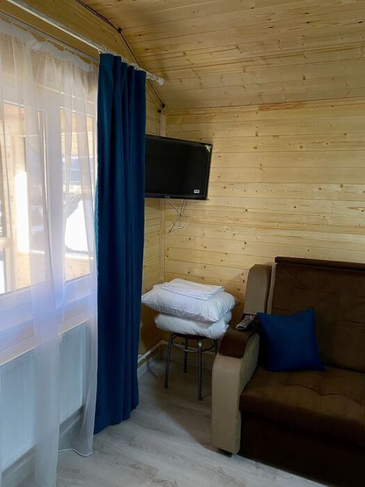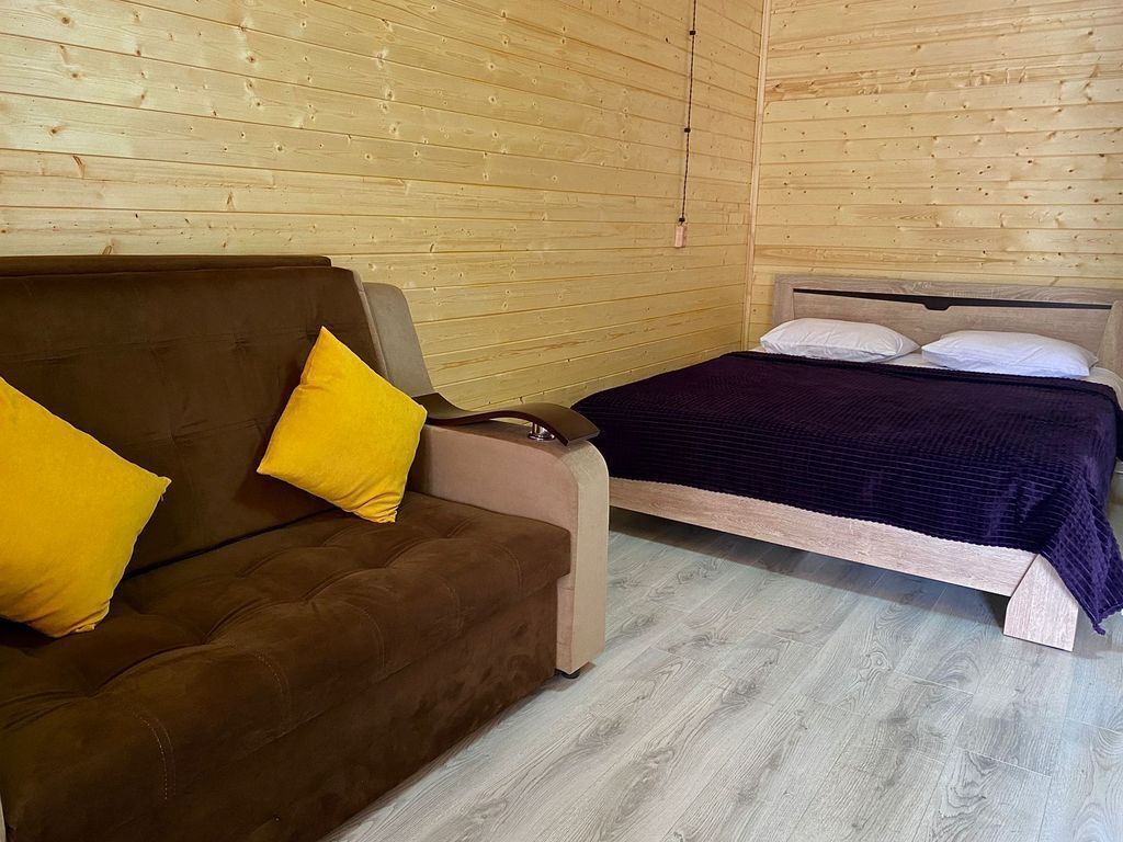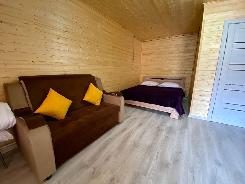 В номере есть все для комфортного проживания - кровать двушка, диван раскладной, кухонная зона с принадлежностями, холодильник, свч-печь, электрический чайник. Санузел в номере.