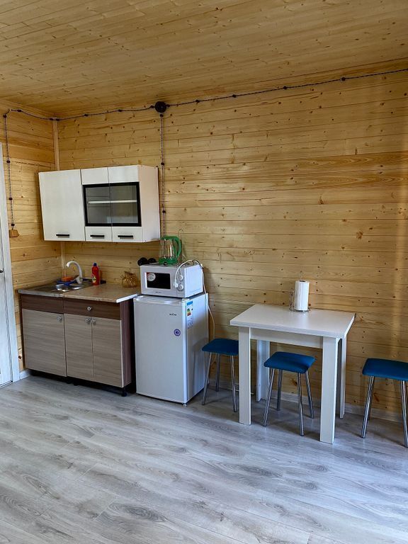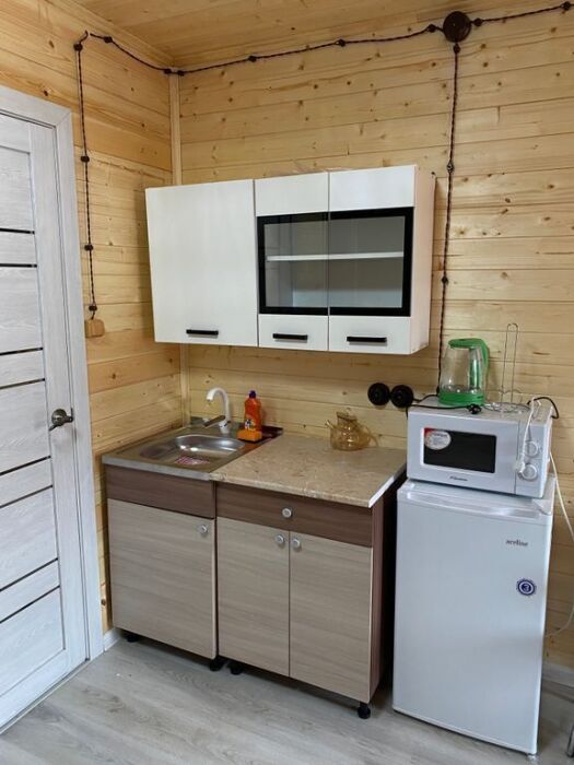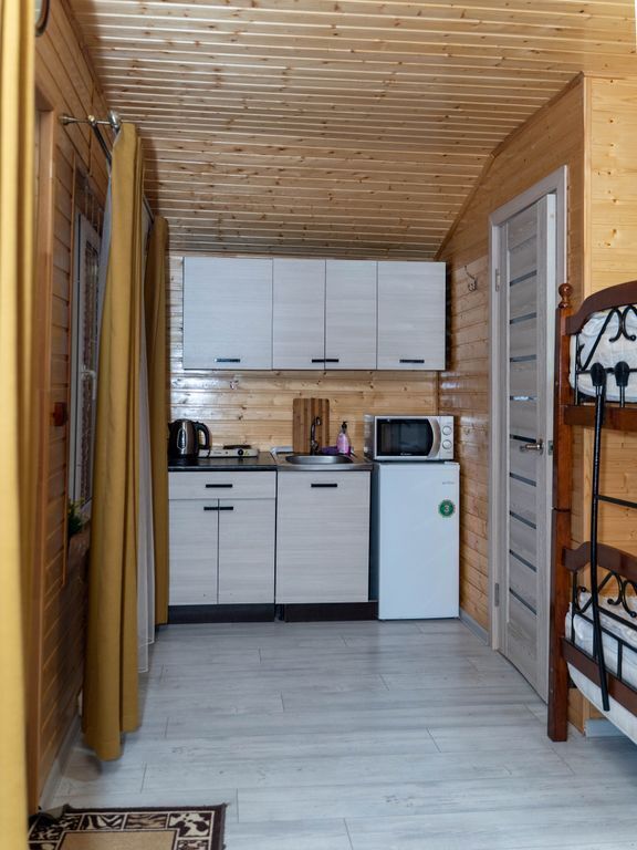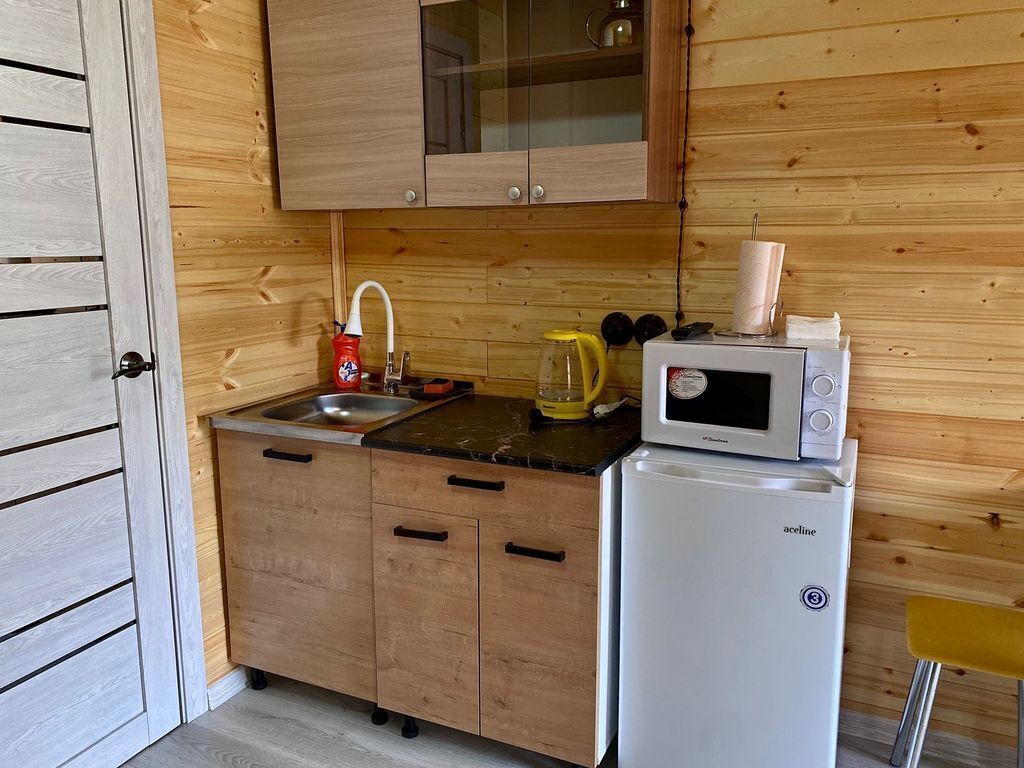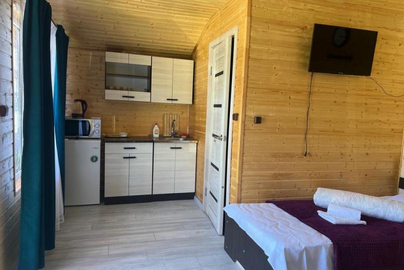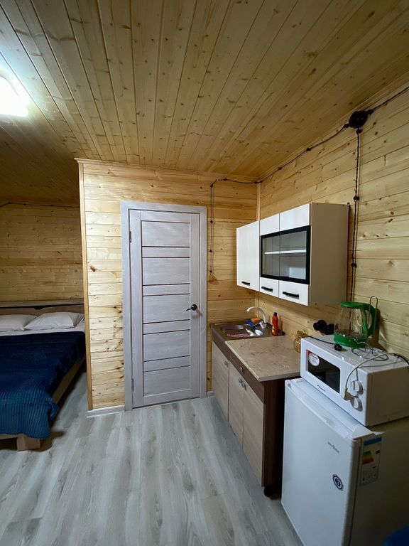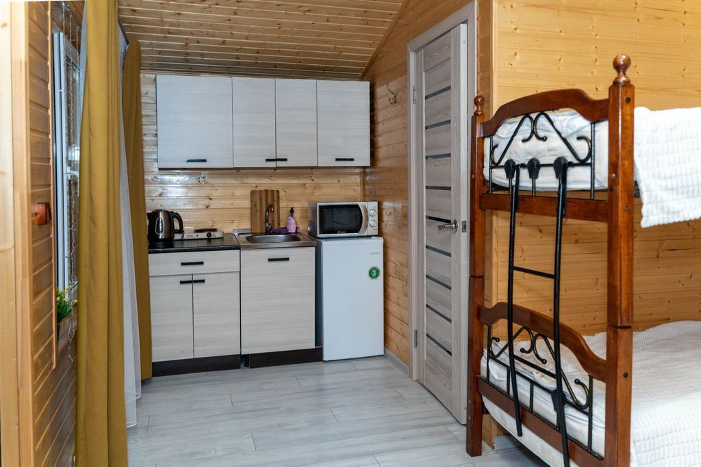 В номерах есть все для комфортного проживания (кухонная зона, СВЧ печь, холодильник, фен).