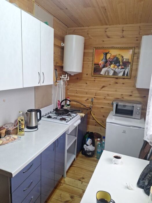 Уютный двухкомнатный дом с кухней и газовой плитой.