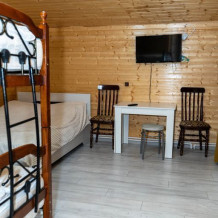 Коттеджи оборудованы всем необходимым для комфортного проживания, в том числе с санузлом с душевой кабиной. Кухонной зоной, где есть все необходимое (холодильник, электрическая плита, кухонная утварь, чайник, СВЧ печь) и верандой. Есть фен, дополнительный обогрев, полотенца, средства от насекомых, микроволновая печь, газовая или электрическая плита и кухонная утварь.