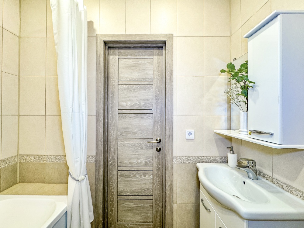 В квартире: двуспальная кровать 160*200 см с новым ортопедическим матрасом Аскона в спальне, удобный двуспальный диван 120*190 см на кухне, оборудованная кухня (холодильник, индукционная плита, микроволновая печь, чайник, вытяжка), стиральная машина, фен, утюг, сплит-система в спальне, сетка на окнах, набор посуды и столовых принадлежностей на 4 персоны, смарт-ТВ и высокоскоростной Wi-Fi. Каждому гостю предоставляется по 2 полотенца (банное и для лица), полотенце для ног, 2 комплекта белого постельного белья. Застекленная лоджия с панорамным остеклением.