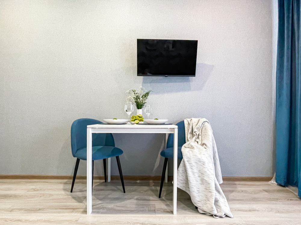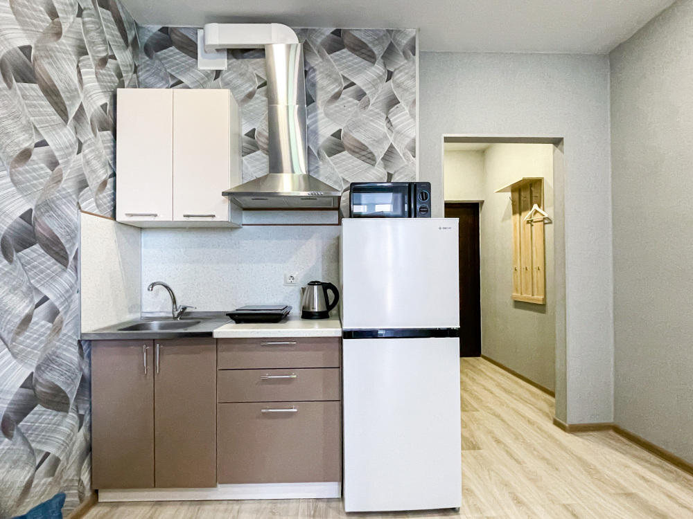 Квартира-студия рассчитана на 2 человек. Могу предоставить ортопедическую раскладушку как дополнительное место. На фото диван в разложенном варианте, заправленный. Квартира укомплектована всем необходимым для комфортного проживания – диваном, душевой кабиной, смарт-ТВ, вайфай.