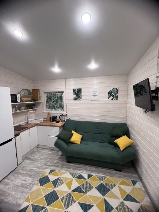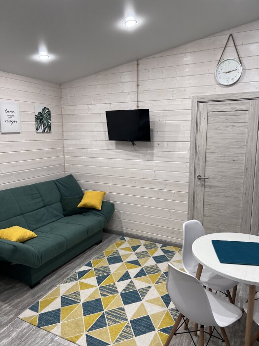 - Гостиная (2-пальный диван 140х200), телевизор smart tv, обеденный стол на 4 персоны, стулья.