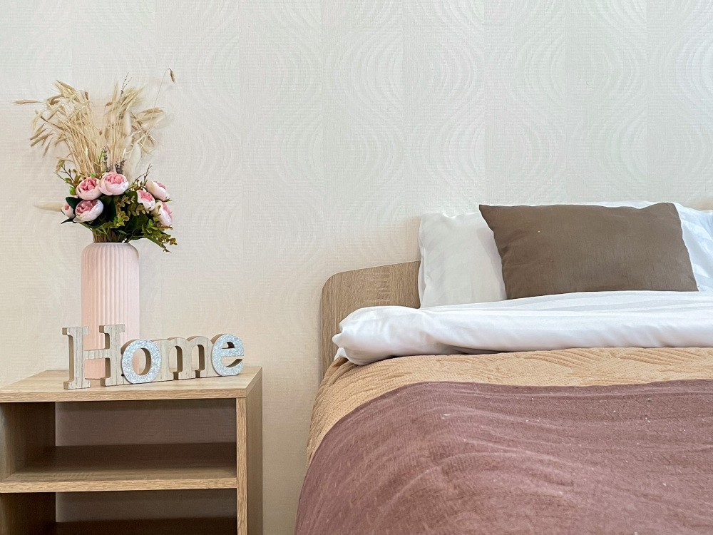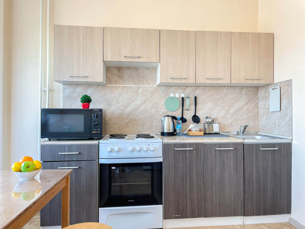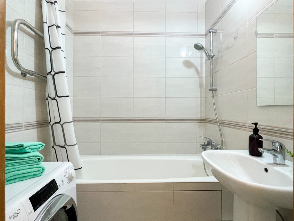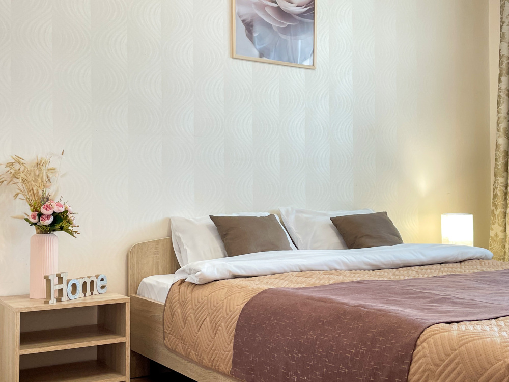 Квартира очень просторная, размещаем до 6 человек. Имеется три раздельных спальных места - две удобные двуспальные кровати и двуспальный диван. Бытовая техника - телевизор, холодильник, микроволновая печь, электрическая плита, духовка, электрический чайник, стиральная машина, гладильная доска/сушильная доска, фен, утюг. Укомплектованная кухонная зона - столовые приборы, посуда, чай, кофе, сахар, масло. Чистое постельное бельё, полотенца, средства личной гигиены. Быстрый и стабильный Wi-Fi, цифровое TV. Перед каждым заселением проводим генеральную уборку.
