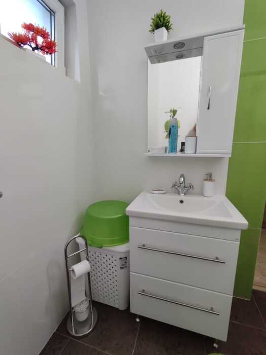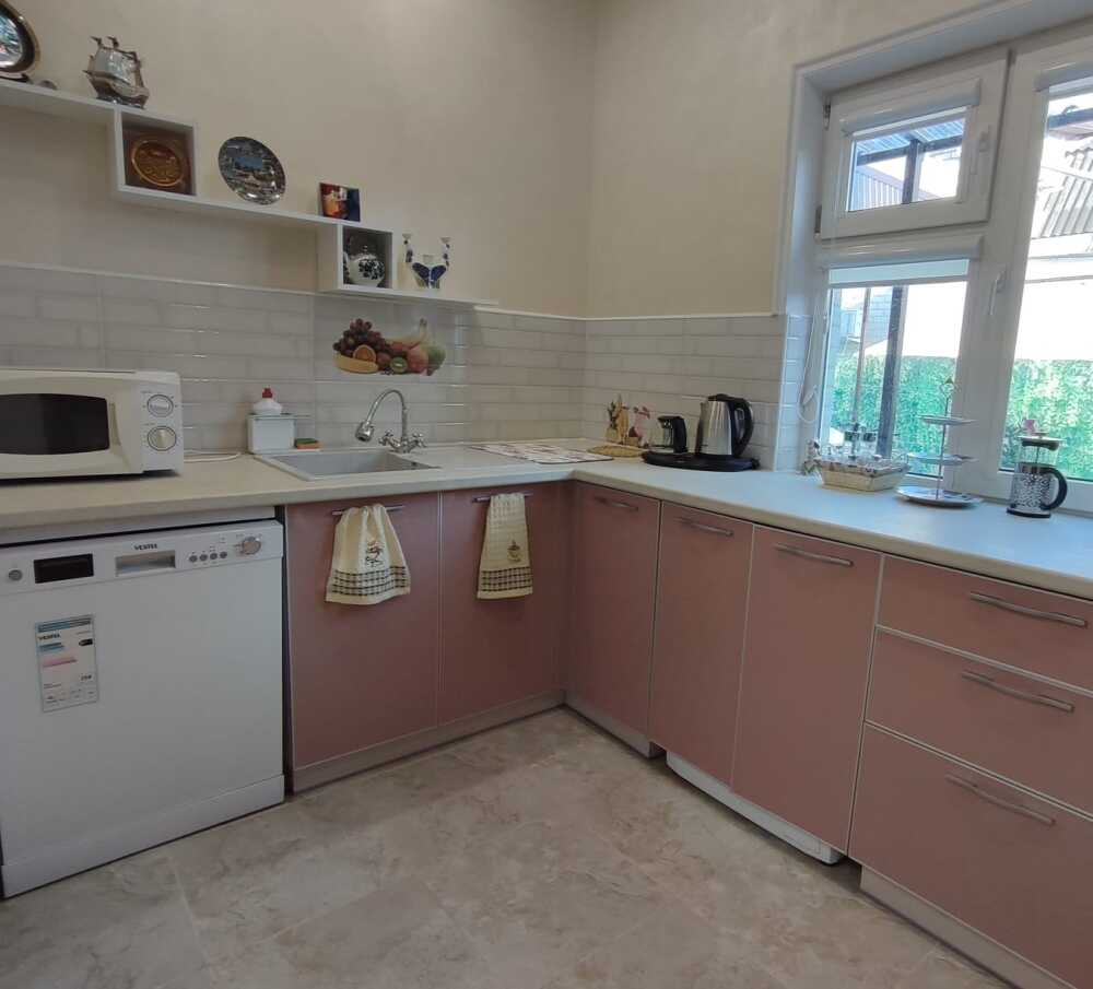 В доме есть всё необходимое для комфортного отдыха семьи или дружной компании до 8 человек: три спальни, столовая, обустроенная кухня с бытовой кухонной техникой (посудомоечная машина с таблетками для мытья посуды, стиральная машина и порошок, микроволновая печь, электрические чайник и кофеварка, турочка, двухконтурный котёл, газовая панель, вытяжка). Набор кухонной посуды и принадлежностей. Постельное бельё и комплект из 3-х полотенец, два санузла. Гигиенический набор, одноразовые тапочки, фен, гладильная доска и утюг, пылесос.
