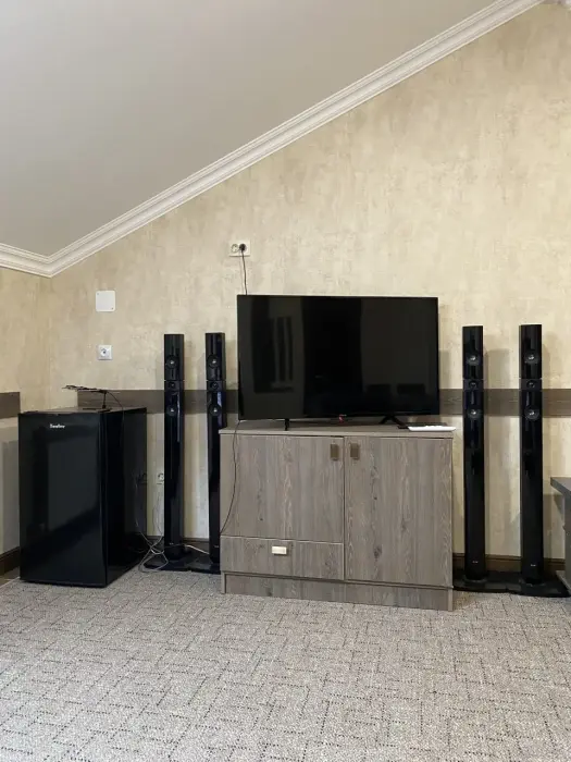 На территории работает WI-FI. Есть общая кухня с панорамными окнами и красивым видом на горы, зона для просмотра телевизора, стиральная машина.