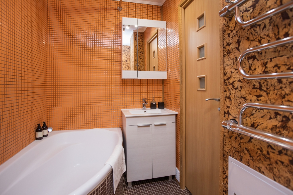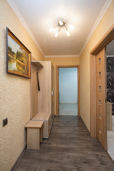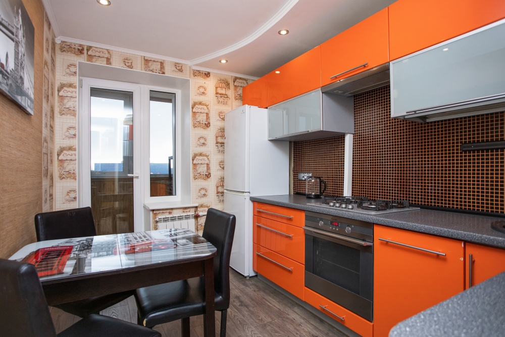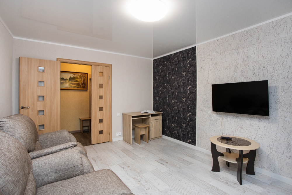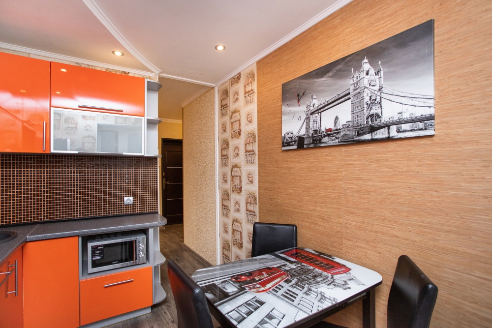 В квартире есть: фен, телевизор с кабельными каналами. Кухня оснащена: холодильником, плитой, электрическим чайником, микроволновой печью, кофемашиной, чай, кофе, сахар, соль, перец, подсолнечное масло всегда в наличии. Бесплатный Wi-Fi.