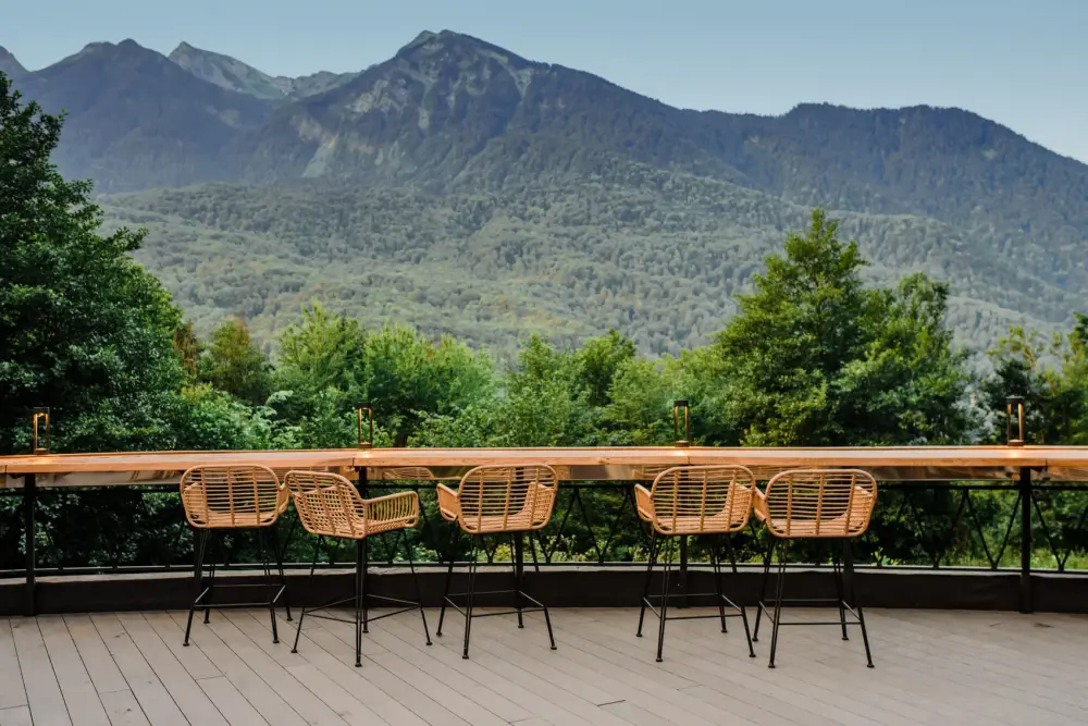 На территории распложен панорамный ресторан. В меню представлены блюда от шеф-повара сети — тандем европейской, кавказской и авторской кухни. В пляжном клубе есть стильная лаунж-зона у бассейна с шезлонгами, видовой бар с авторскими коктейлями и закусками, панорамная сауна. На территории отеля есть купольный массажный кабинет с завораживающим видом, где работают сертифицированные массажисты.