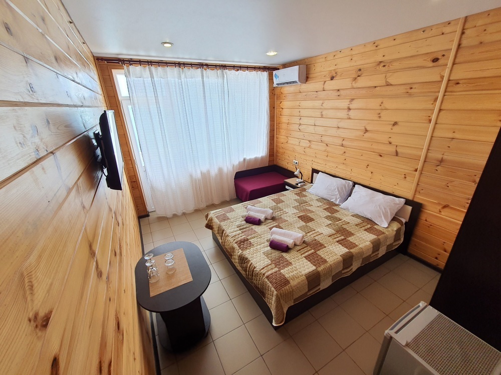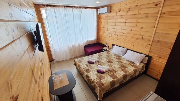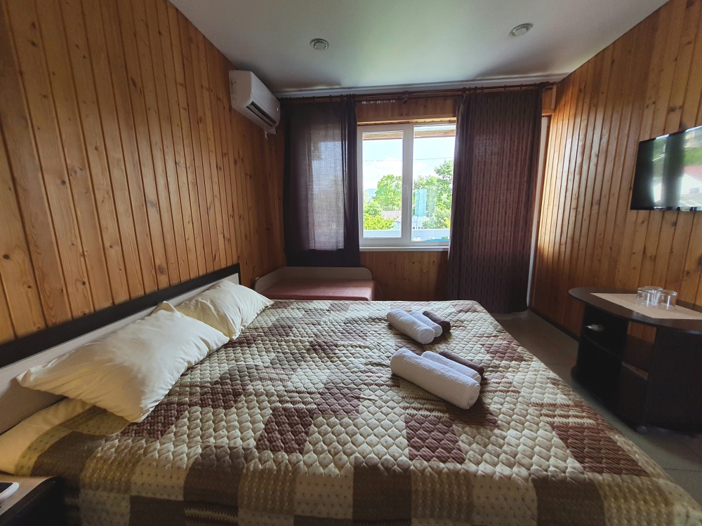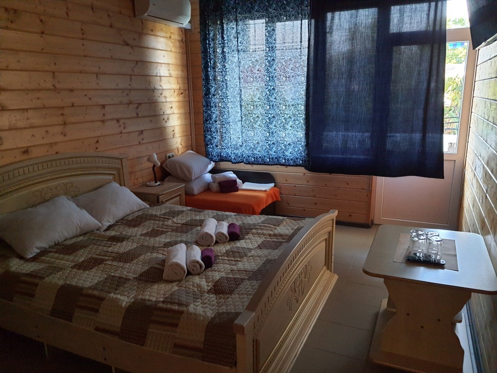 Комнаты укомплектованы двуспальными кроватями с новыми ортопедическими матрасами и небольшими диванами. В каждой комнате есть удобная мебель, телевизор, кондиционер и бесплатный Wi-Fi. Ванная комната оборудована водонагревателем и феном.