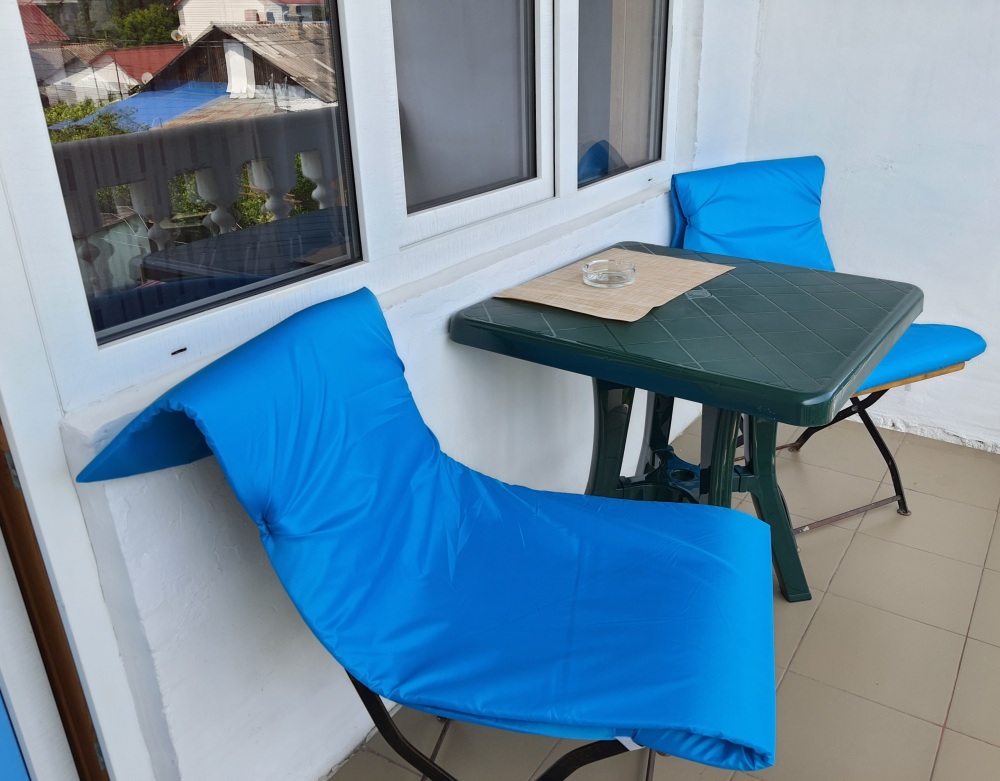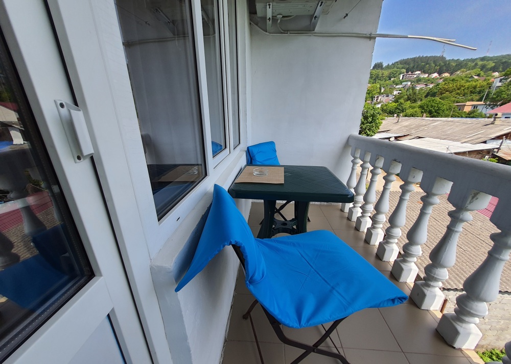 Общая кухня снабжена большим холодильником, газовой плитой и необходимой посудой. На просторном меблированном балконе можно насладиться чашечкой кофе и увидеть дельфинов.