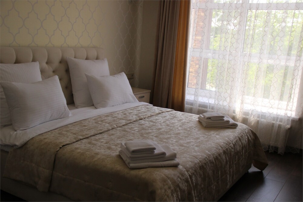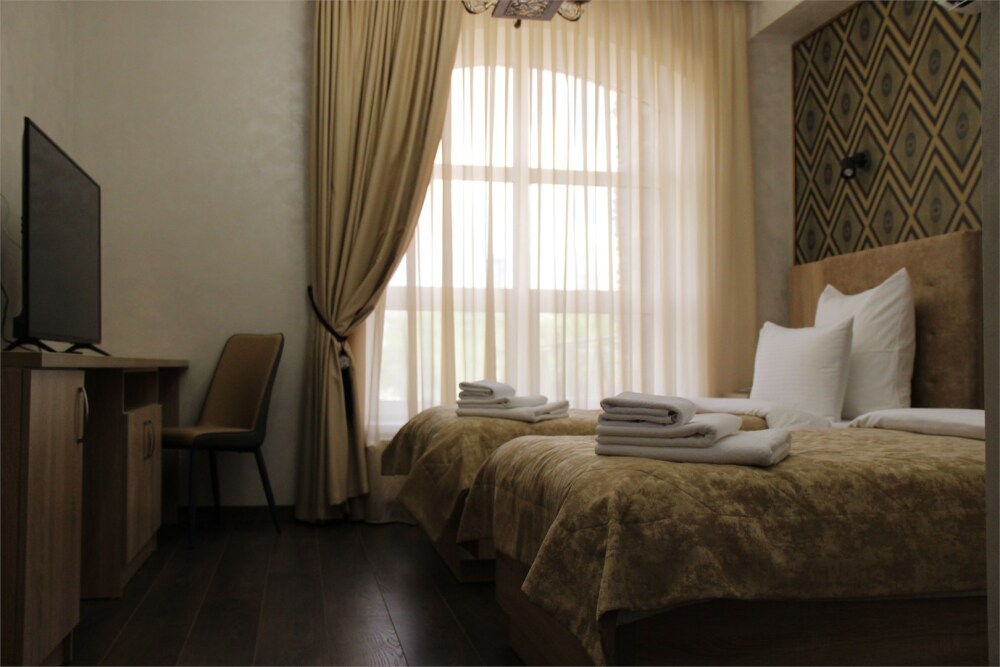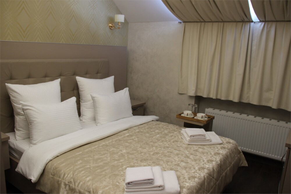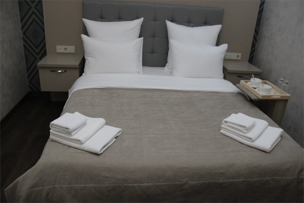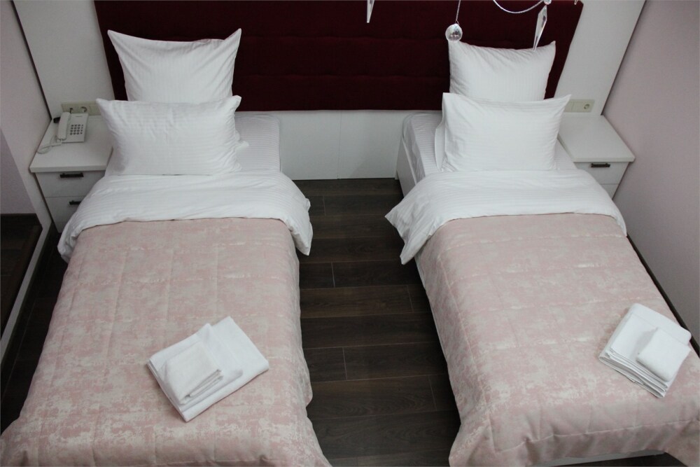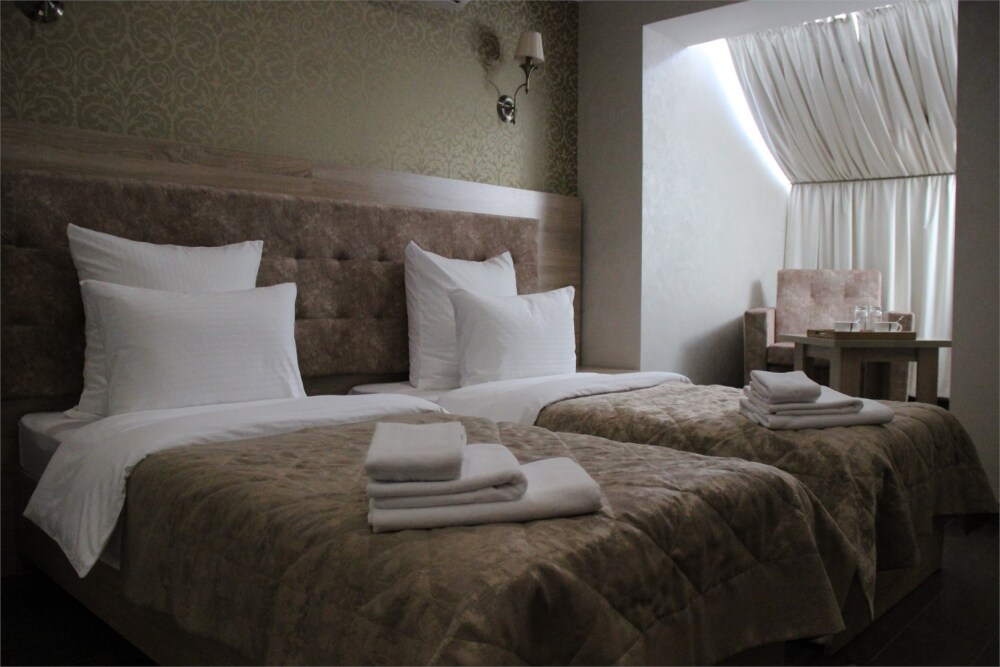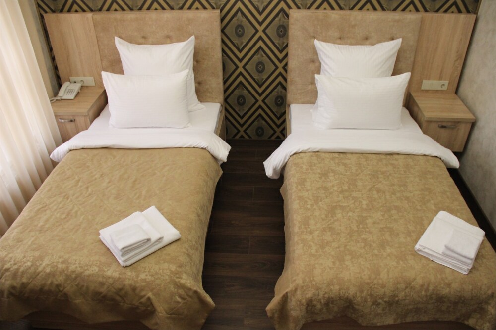 Просторный стандартный 2-местный 1-комнатный номер площадью до 25 кв.м предназначен для гостей, пребывающих с деловыми целями. Номера отличаются особо широкими кроватями и наличием рабочего стола с эргономичными стульями. Просторный санузел оборудован душевой со стеклянным ограждением, а также имеется гигиенический душ. В отделке номеров использованы современные гипоаллергенные материалы. Дизайн комнат и санузлов выполнен в теплых нейтральных тонах с аспектом на стильных деталях.