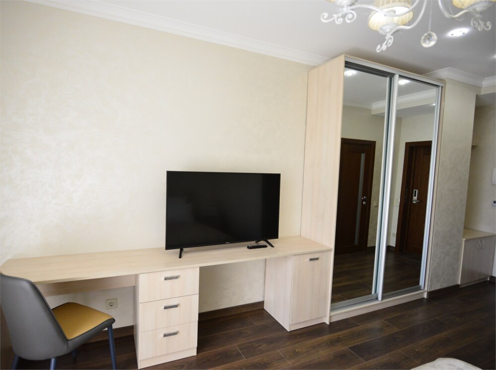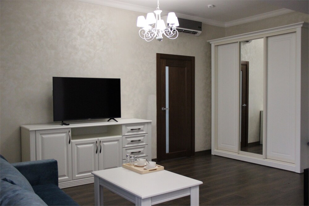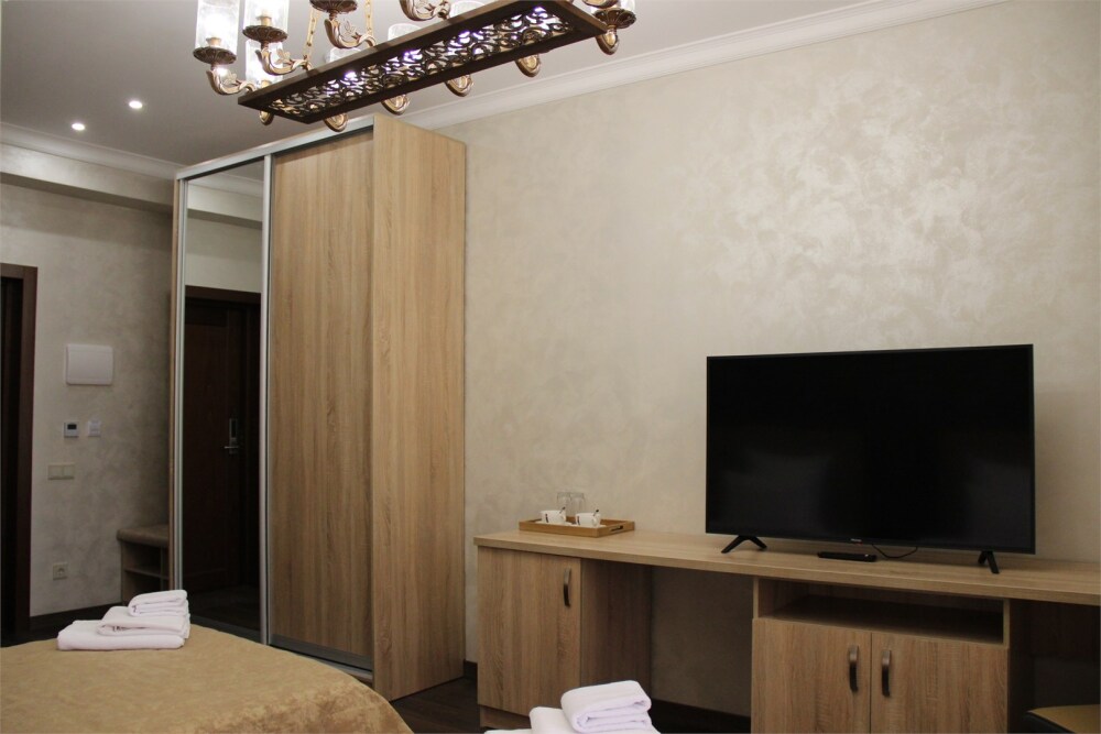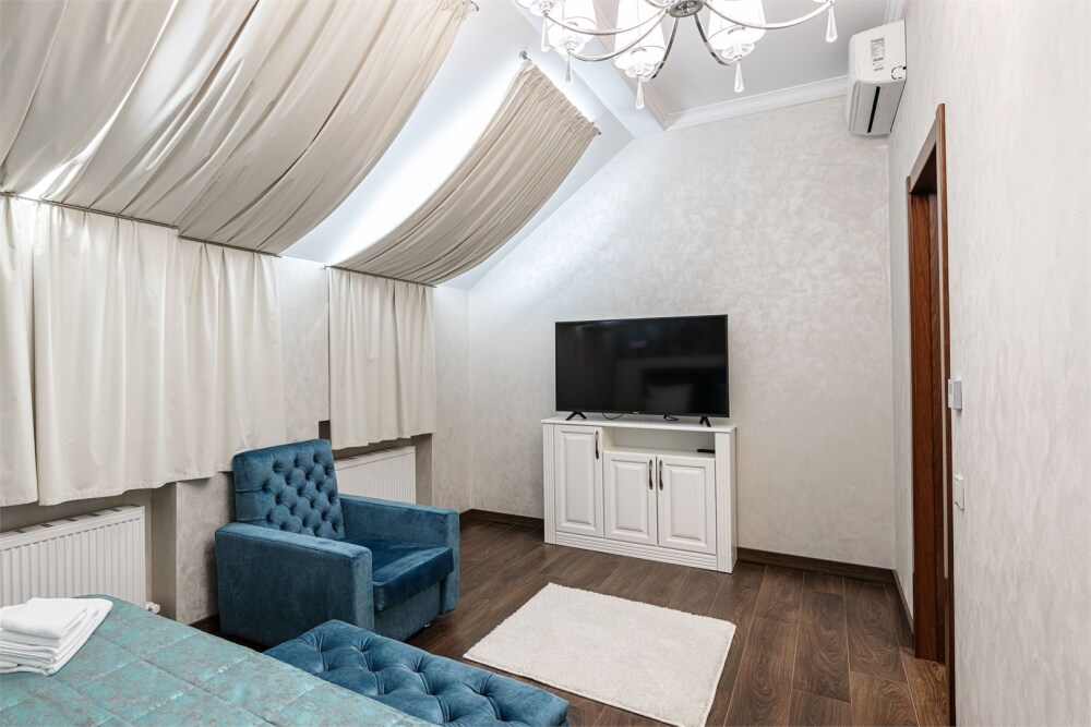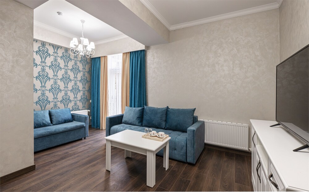 Однокомнатный номер повышенной комфортности площадью от 35 кв.м выбирают гости, предпочитающие идеальные условия проживания вне дома. Комната имеет условное зонирование на зону спальни и зону гостиной, оборудованную набором мягкой мебели. Просторный санузел оборудован душевой со стеклянным ограждением. В отделке номеров использованы современные гипоаллергенные материалы. Дизайн комнат и санузлов выполнен в теплых нейтральных тонах с аспектом на стильных деталях.