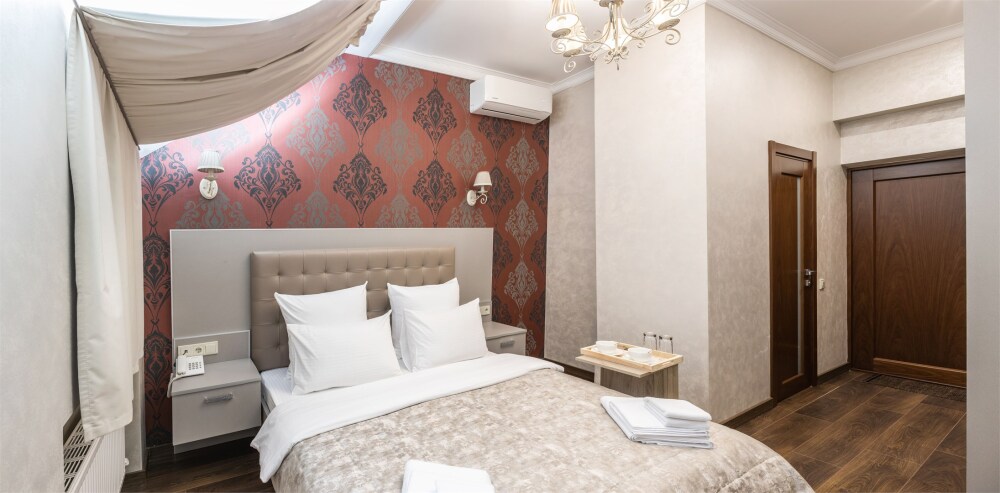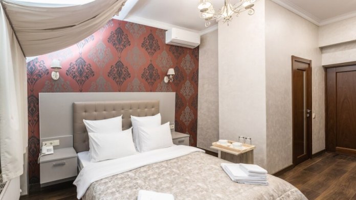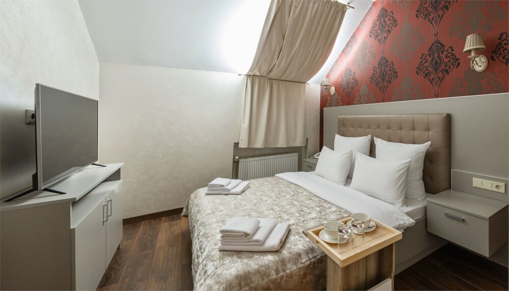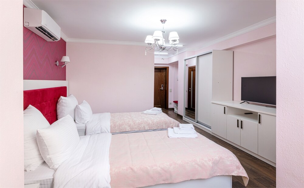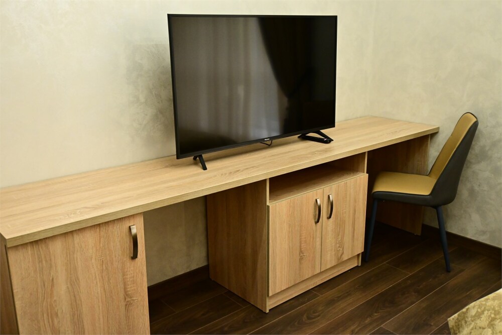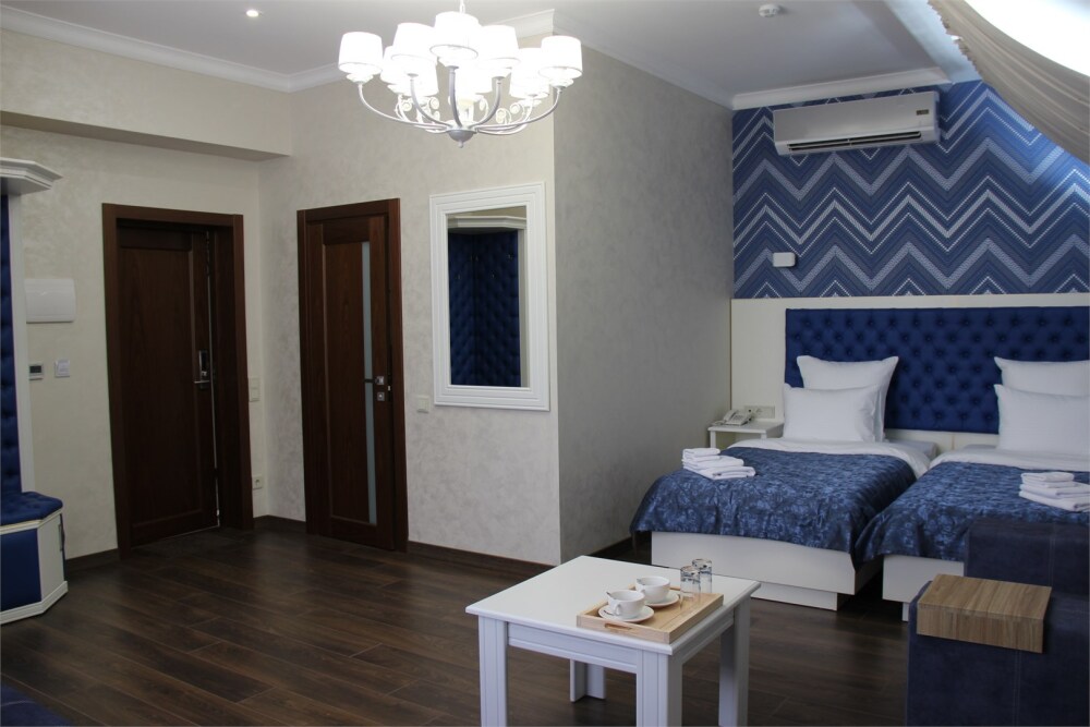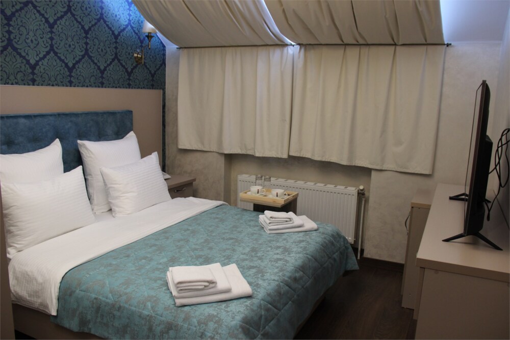 Классический стандартный 2-местный 1-комнатный номер площадью 18-22 кв.м предназначен для размещения 1 или 2 гостей. Номер оборудован всем необходимым для комфортного пребывания. Современная дизайнерская мебель создает ощущение изящества и уюта. Просторный санузел оборудован душевой со стеклянным ограждением, а также имеется гигиенический душ. В отделке номеров использованы современные гипоаллергенные материалы. Дизайн комнат и санузлов выполнен в теплых нейтральных тонах с аспектом на стильных деталях.