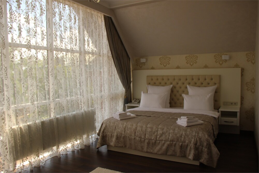 На 2-м и 3-м этажах расположены 20 номеров, разных категорий и вместимости. Номера отлично подойдут, как для индивидуального отдыха, так и для размещения семей. Все номера имеют просторные ванные комнаты с душевыми. Комфорт и уют в номерах создается теплыми тонами декоративной отделки и текстиля, мягкими изголовьями. Сплит-система в каждом номере позволяет поддерживать комфортную температуру воздуха и умеренную влажность 24 часа в сутки.