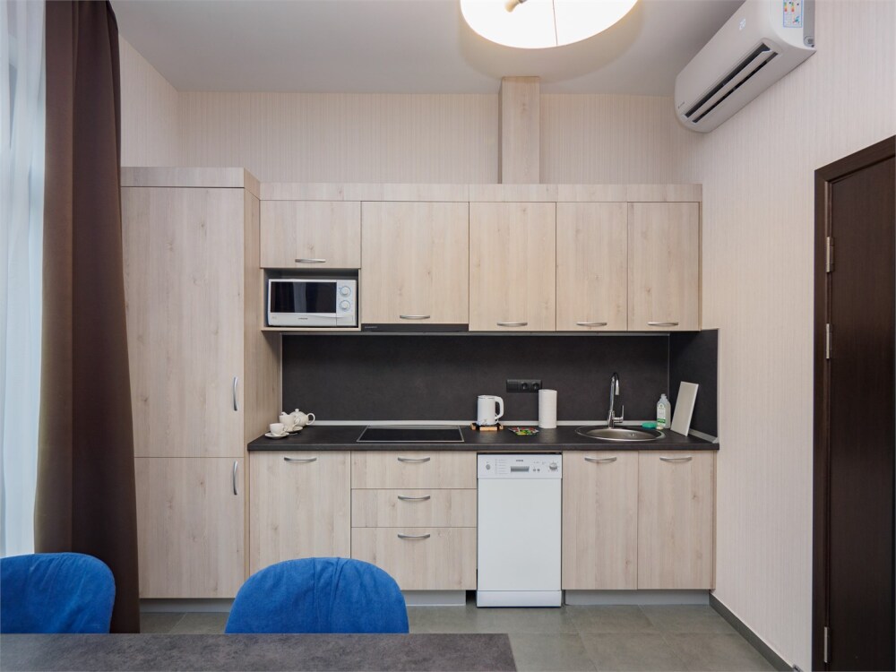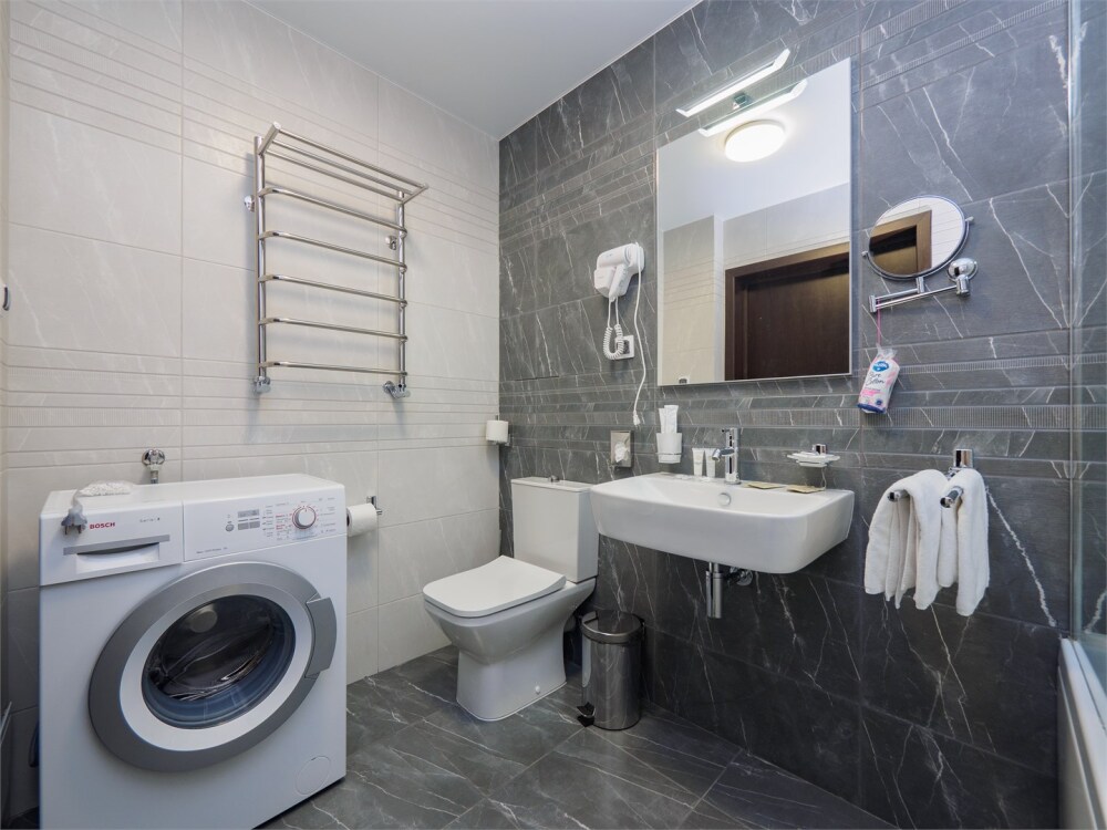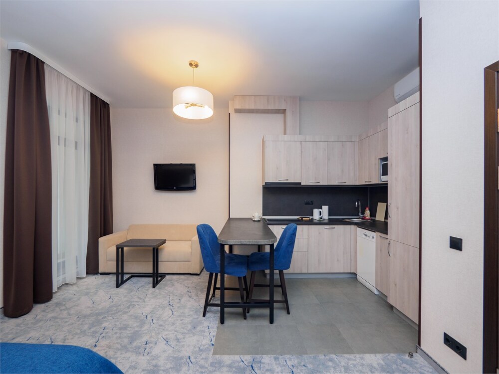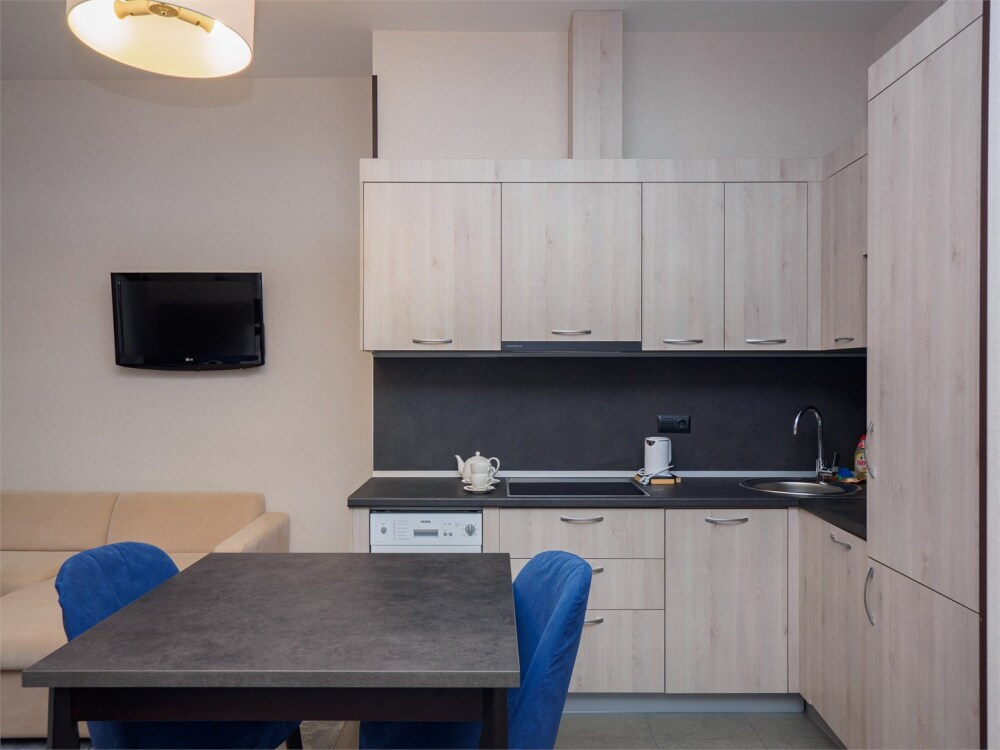 - Современное оснащение: кухни, оборудованные по последнему слову техники, стильные ванные комнаты и эргономичная мебель.