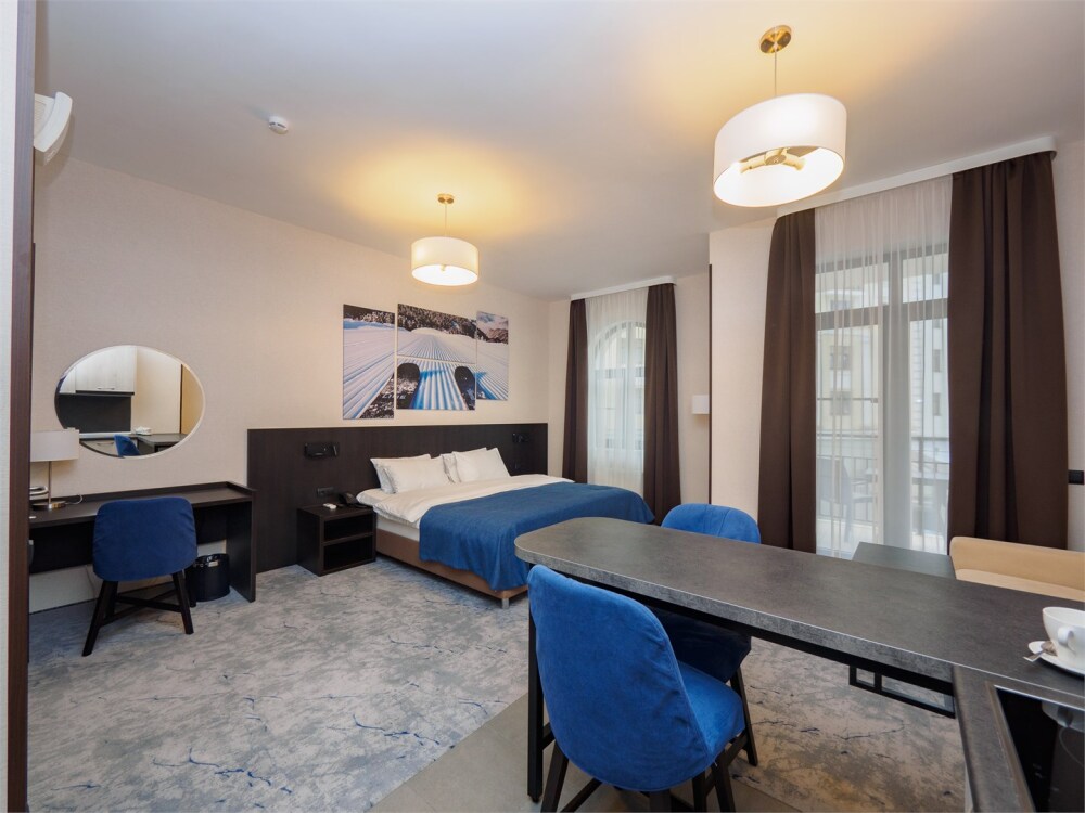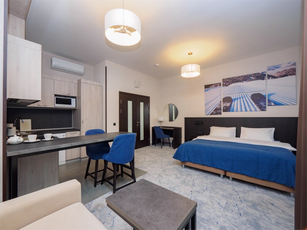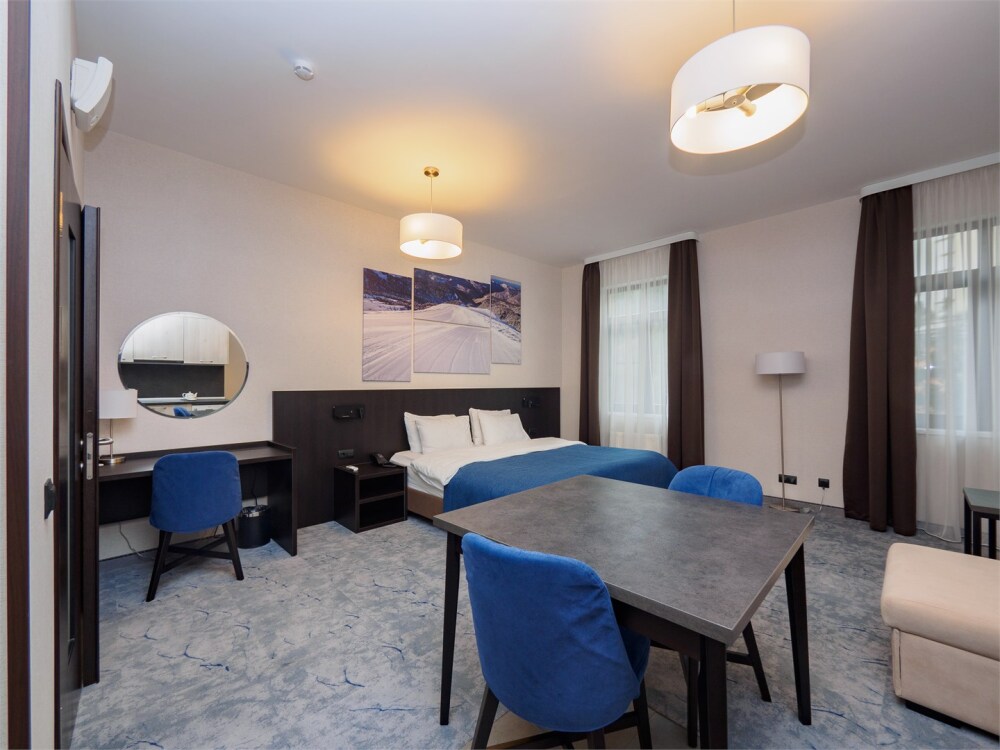 Рядом находятся рестораны с изысканной кухней, уютные кафе, магазины и спа-салоны. А любители активного образа жизни смогут насладиться катанием на лыжах, альпинизмом, шопингом и многими другими развлечениями.