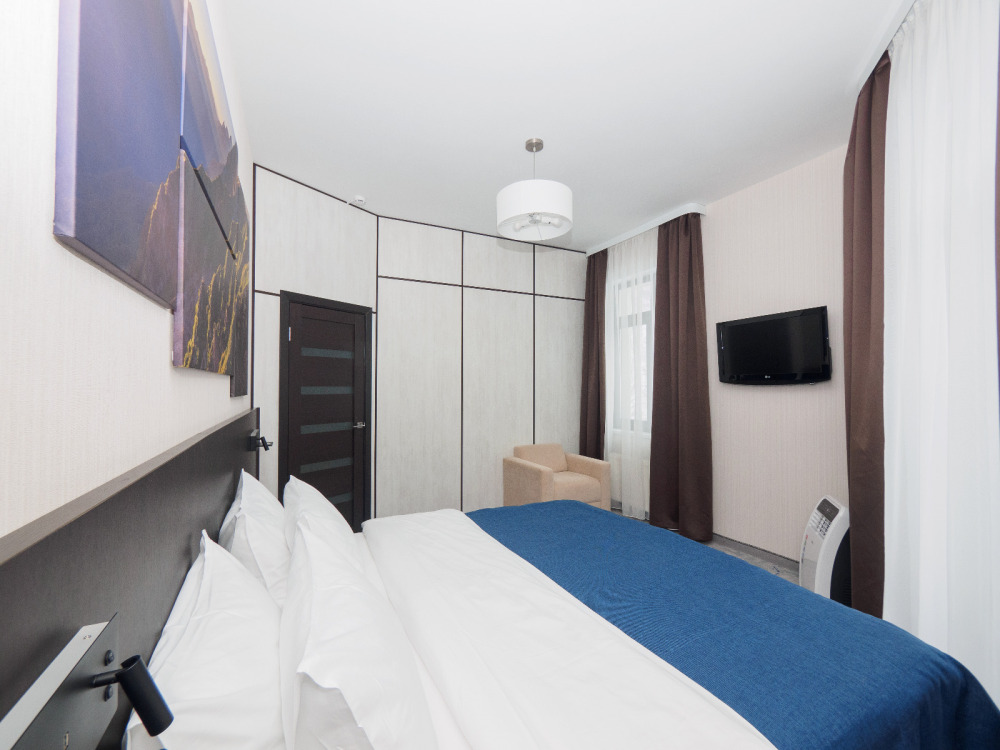 Для каждого гостя предоставляются на период проживания: халат, тапочки, постельное белье, гигиенический набор и полотенца.