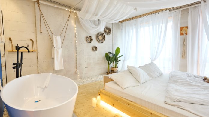 Теплое пространство, в 7 минутах от метро «Хорошевская», со своей уникальной атмосферой, необычными фотозонами, зоной чилаут, открытым душем, открытой ванной и телевизорами, где с комфортом можно разместиться.