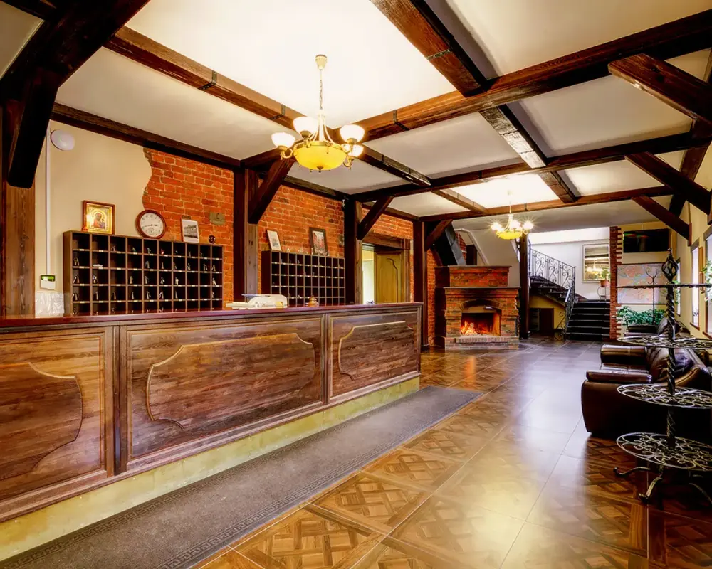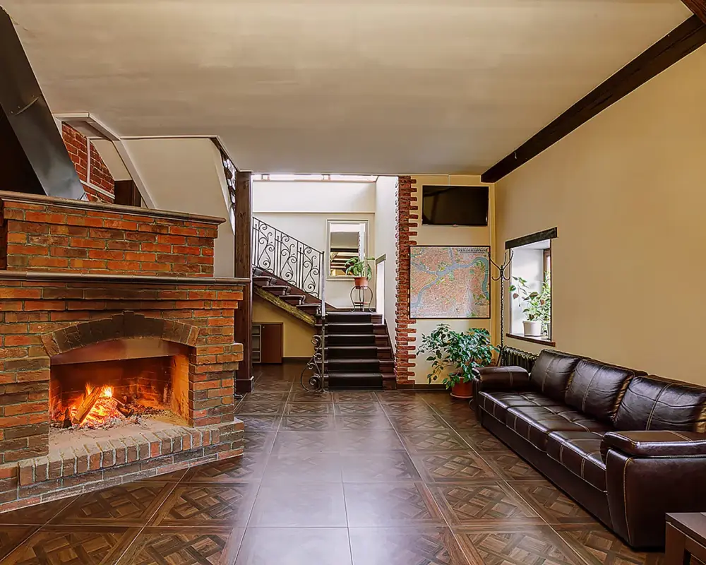 - В кафе с камином на территории отеля подаются блюда русской кухни.