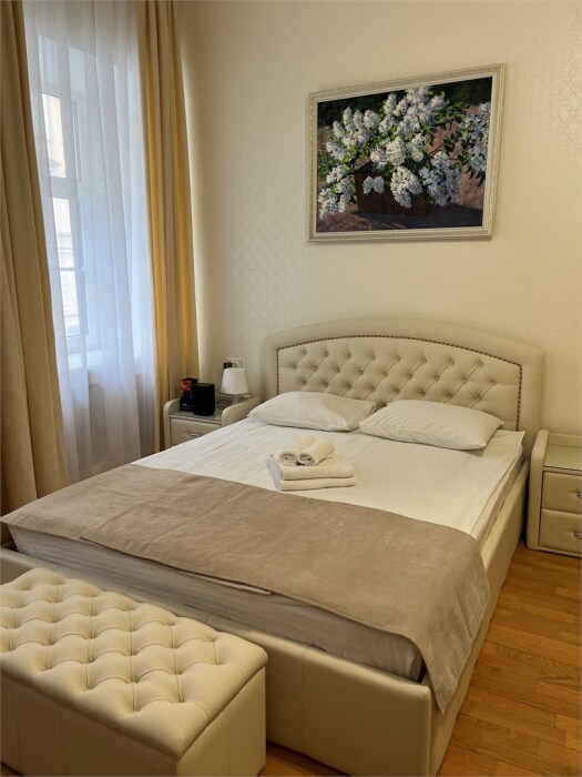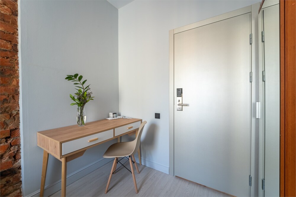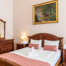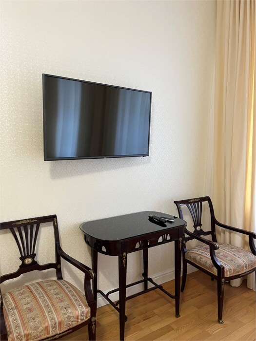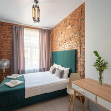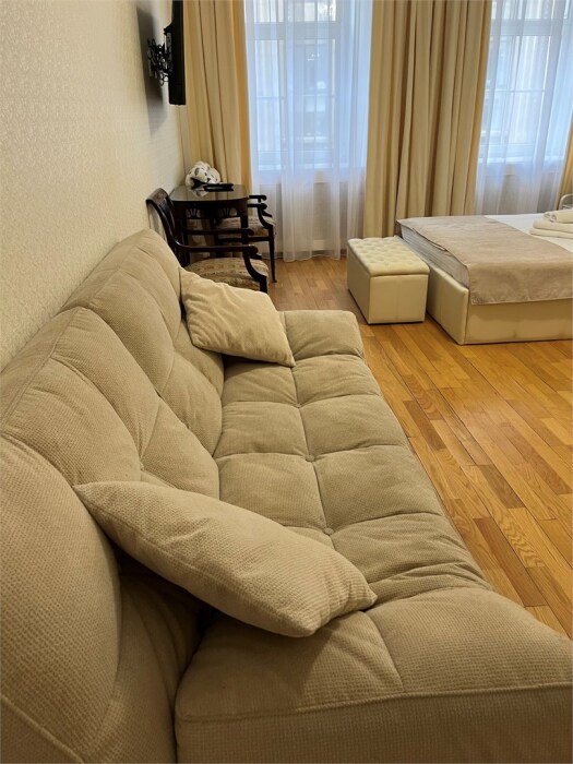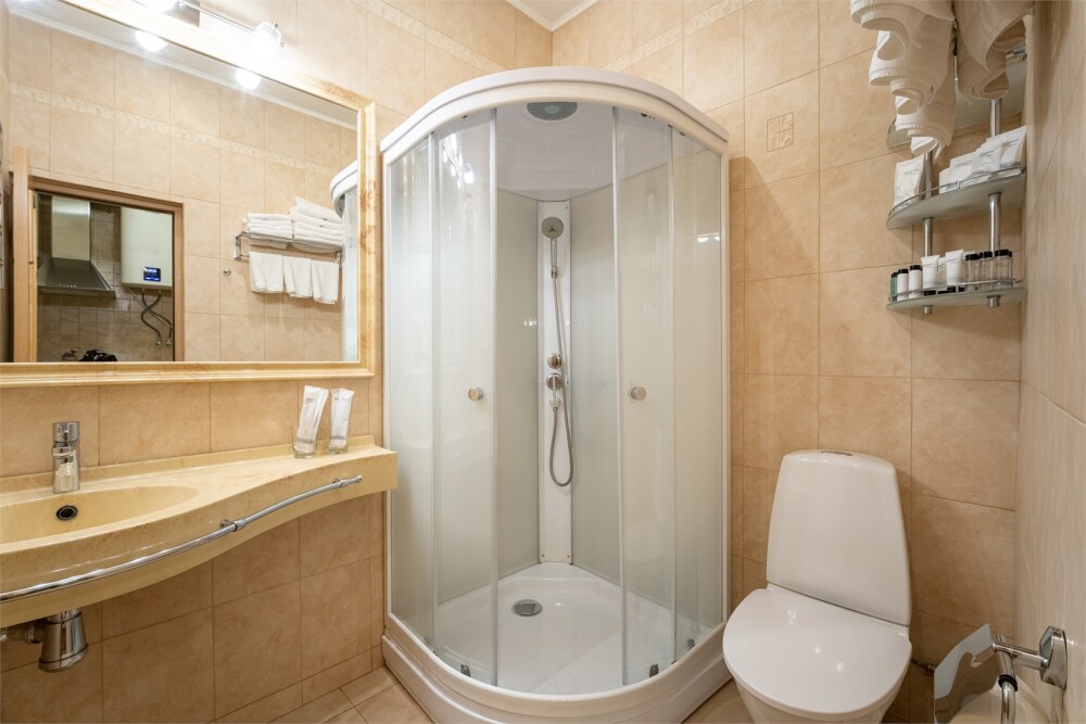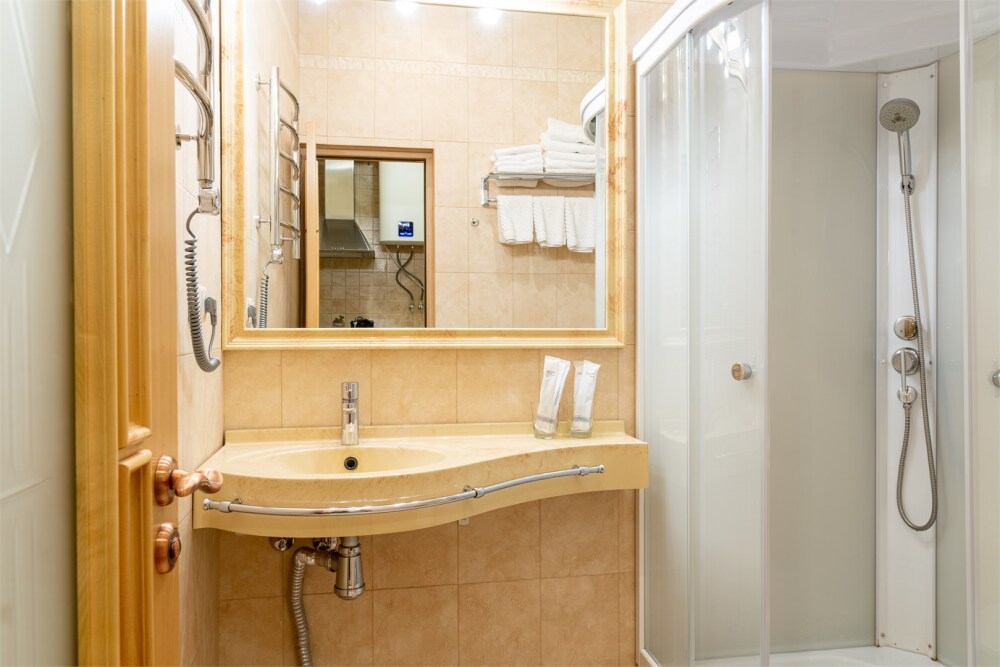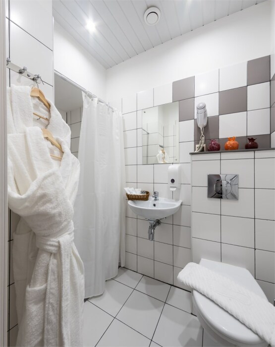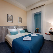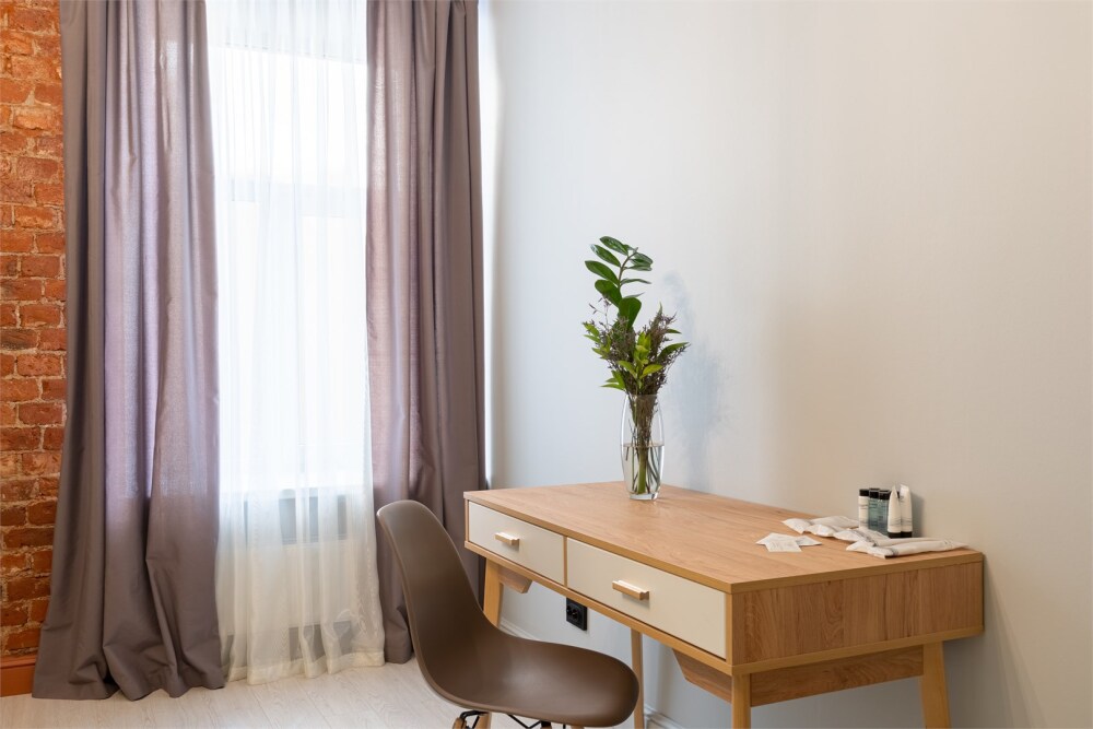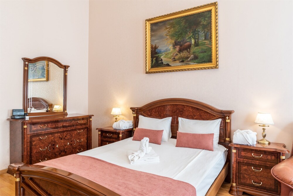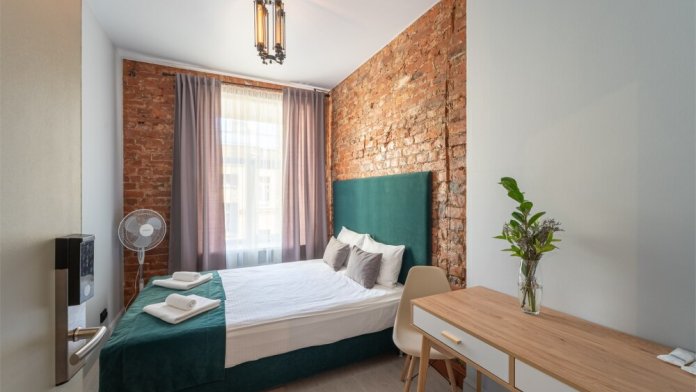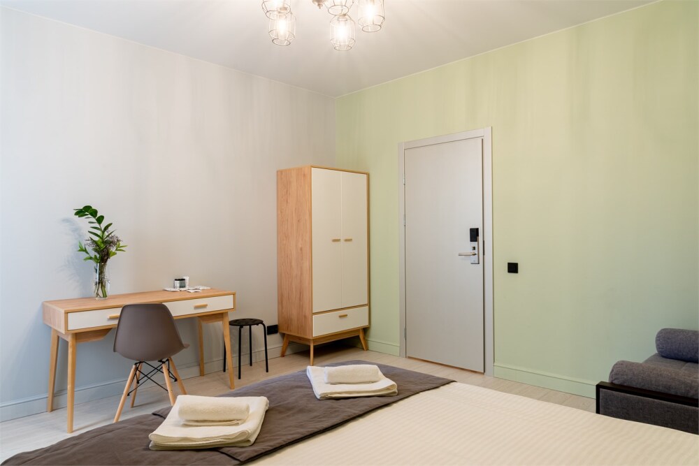 Кровать с ортопедическим матрасом. Часть номеров с отдельным входом с улицы. В номере центральная система вентиляции воздуха. Оснащение номера: телевизор с плоским экраном и Usb-разъемом, телефон для связи с ресепшн, комплект полотенец, гипоаллергенное постельное белье, светонепроницаемые шторы, беруши, щетка для одежды, рожок, губка и салфетка для обуви, вода в бутылках, средства личной гигиены (шампунь-гель для душа, жидкое мыло для рук, туалетная бумага). Возможность размещения доп. места (еврораскладушка).