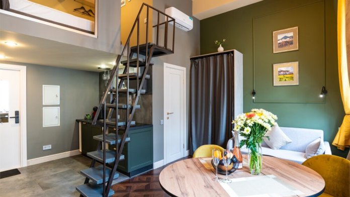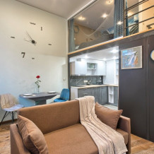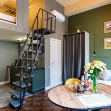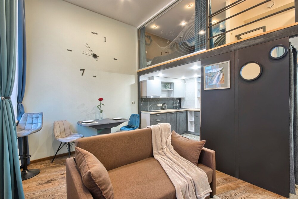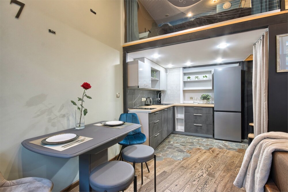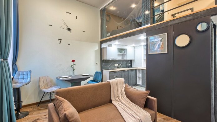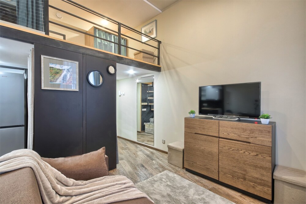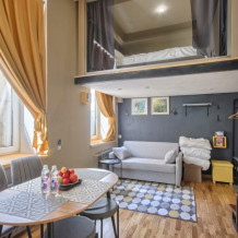 Апартаменты полностью оборудованы всей необходимой мебелью и техникой: стиральная машина, холодильник, чайник, электрическая плита, утюг, пылесос, фен, телевизор, а так же современной системой «Умный Дом» с Алисой.