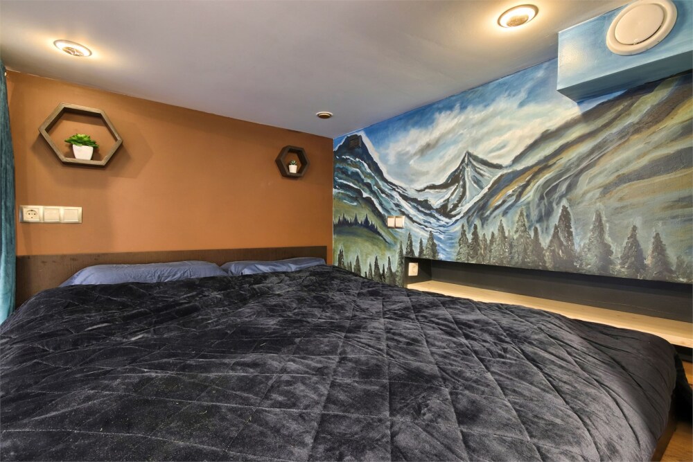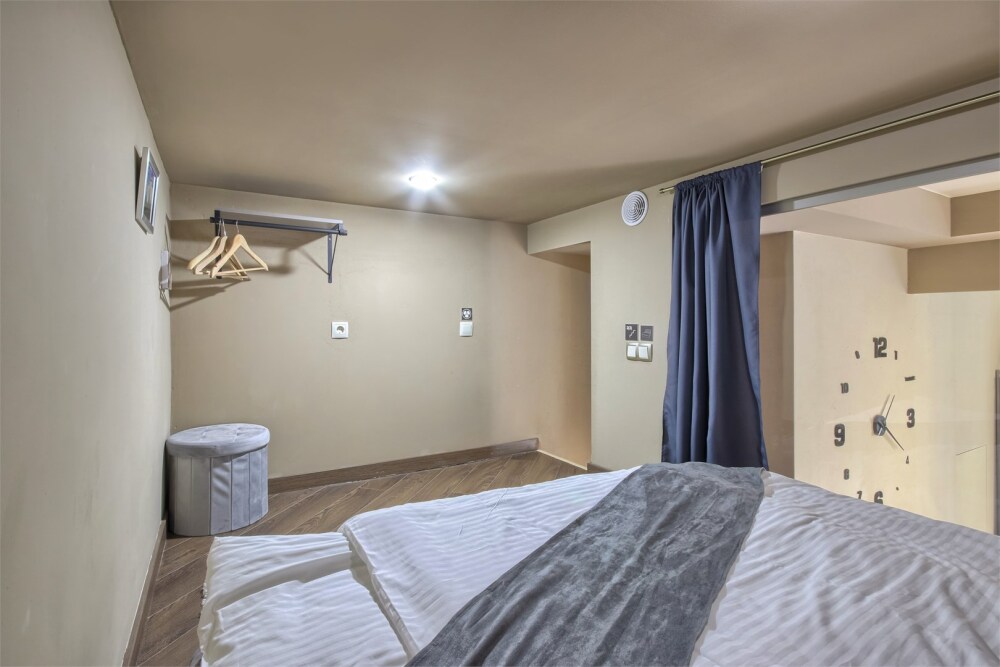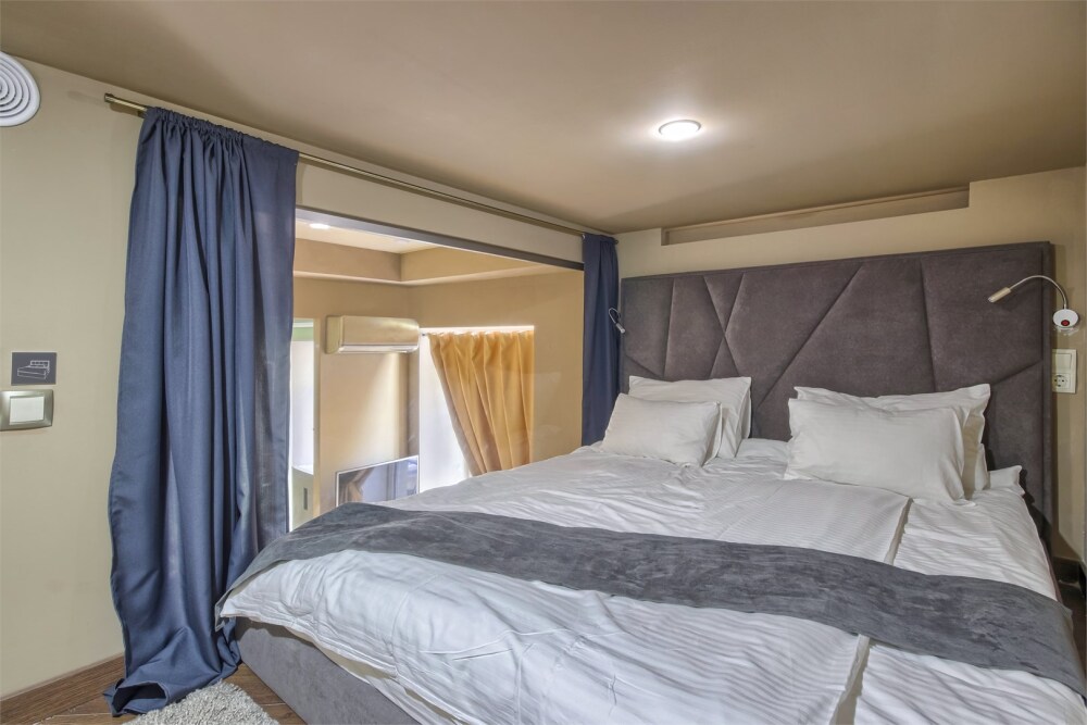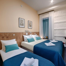 Кровати: кровать Queen size или 2 полутораспальные кровати. Оснащение номера: зона прихожей с полками и вешалками для одежды, зеркало, Wi-Fi, корзина для мусора, комплект полотенец, гипоаллергенное постельное белье, светонепроницаемые шторы, беруши, щетка для одежды, рожок, губка и салфетка для обуви.