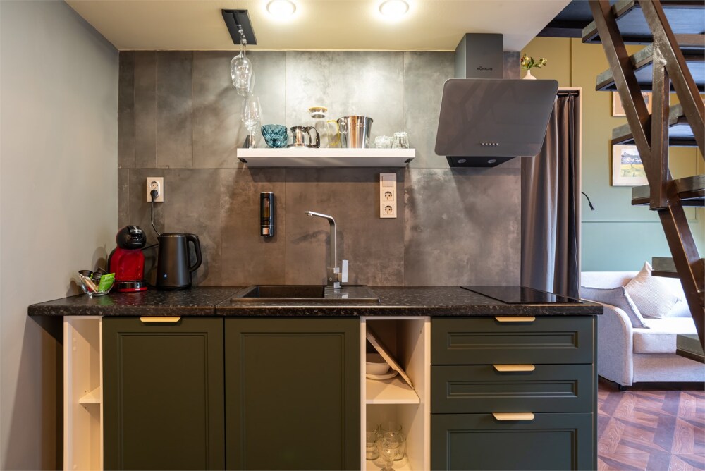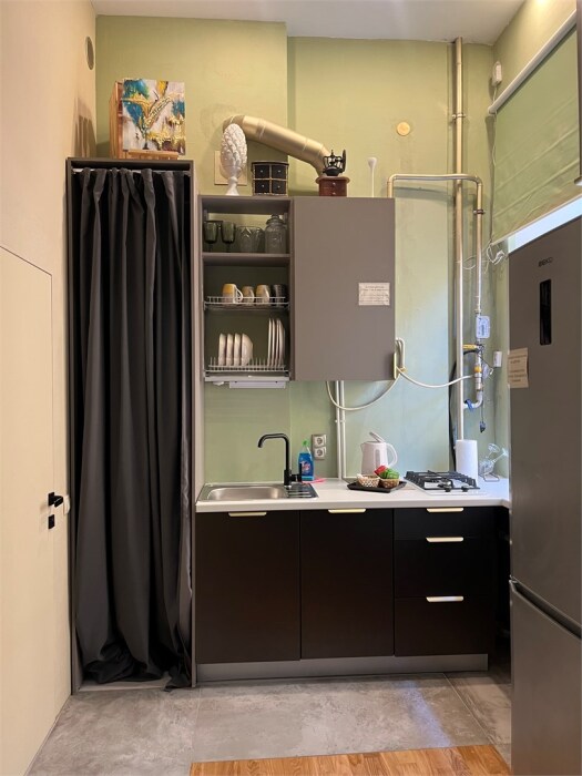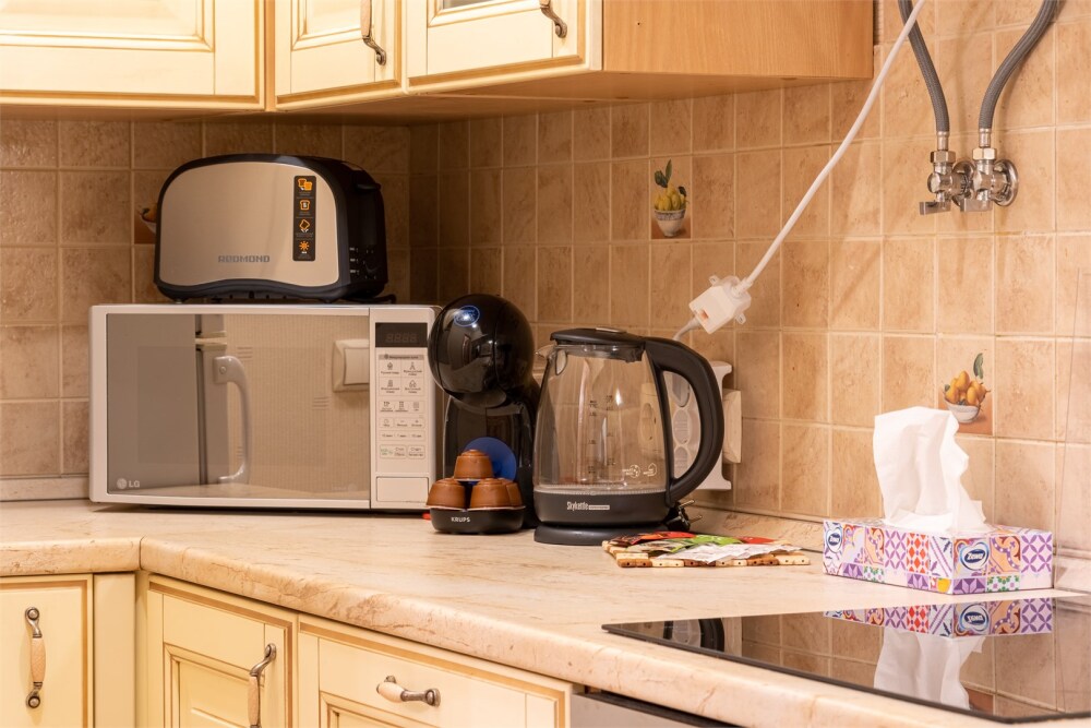 Оснащение: кофемашина, вентилятор, теплый пол, москитная сетка, гладильная доска, утюг, тостер, пылесос.