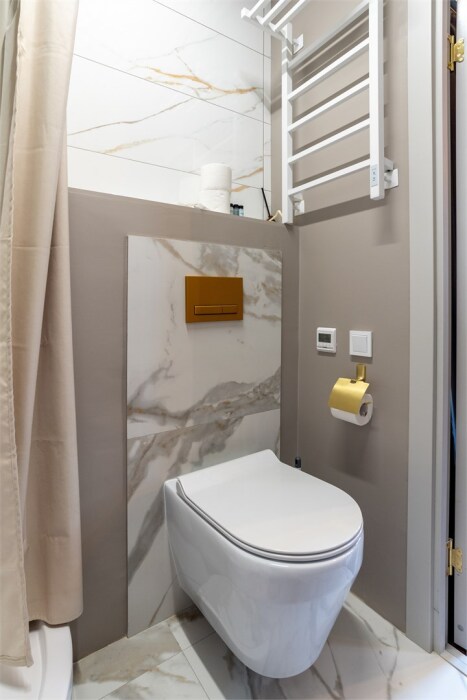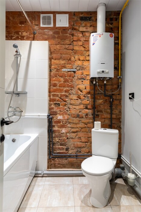 В квартире для комфортного проживания есть приточно-вытяжная вентиляция, тёплые полы в ванной и коридоре.