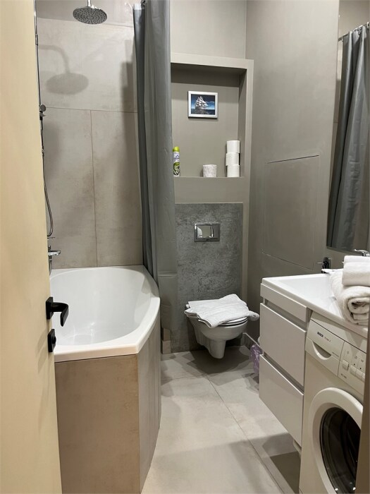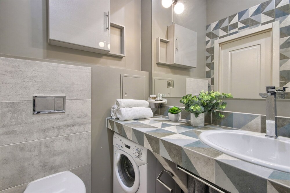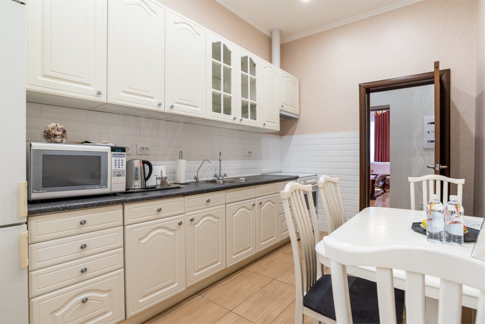 В квартире для комфортного проживания есть приточно-вытяжная вентиляция, тёплые полы в ванной и коридоре. Апартаменты полностью оборудованы всей необходимой мебелью и техникой: стиральная машина, холодильник, чайник, электрическая плита, утюг, пылесос, фен, телевизор.