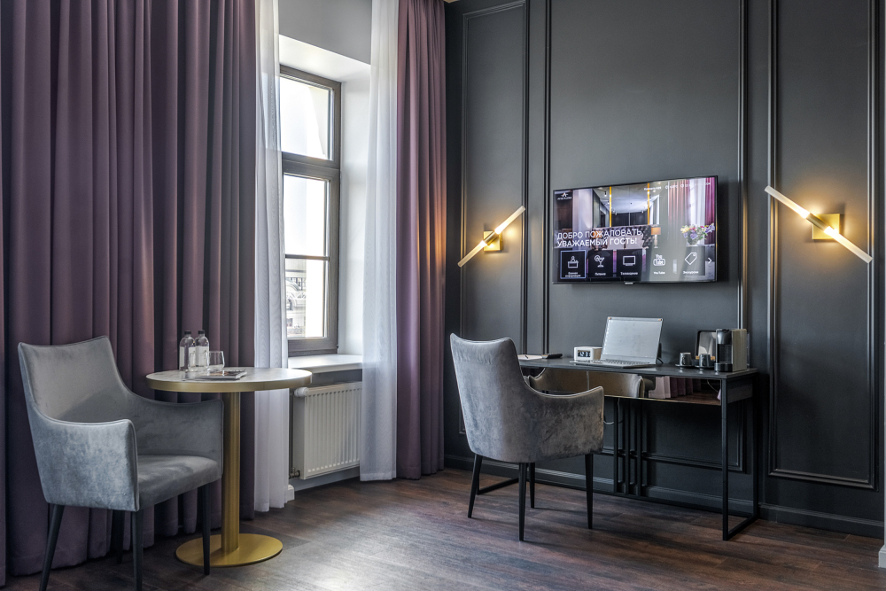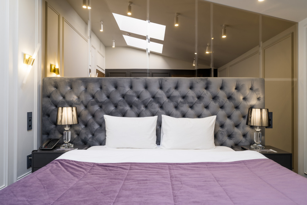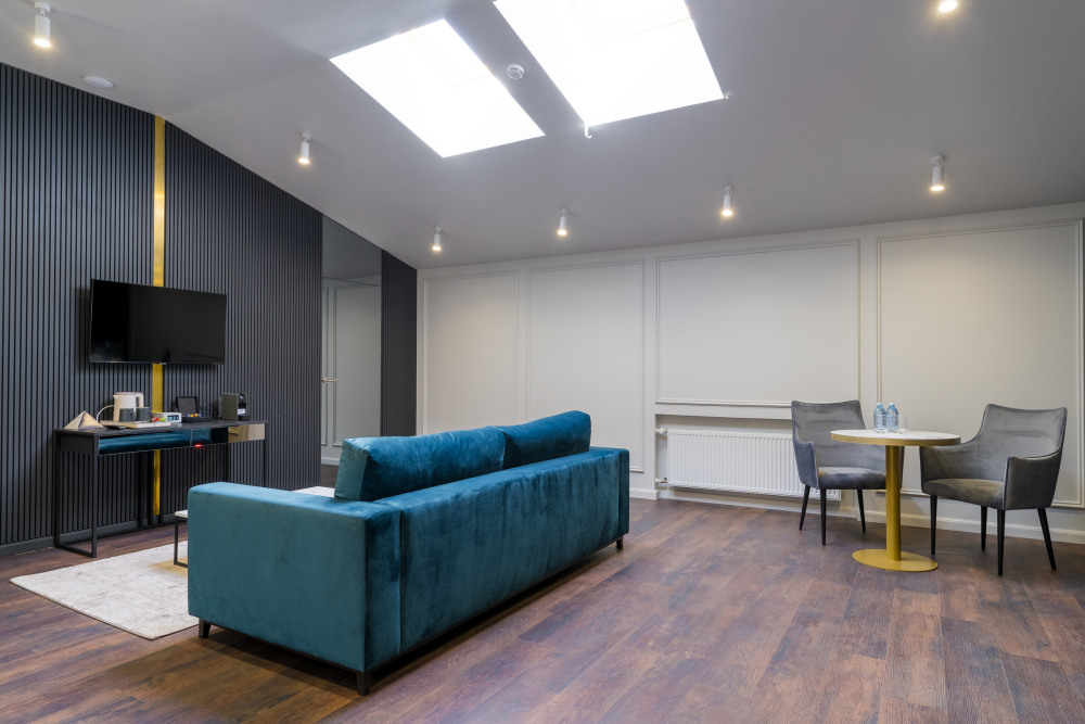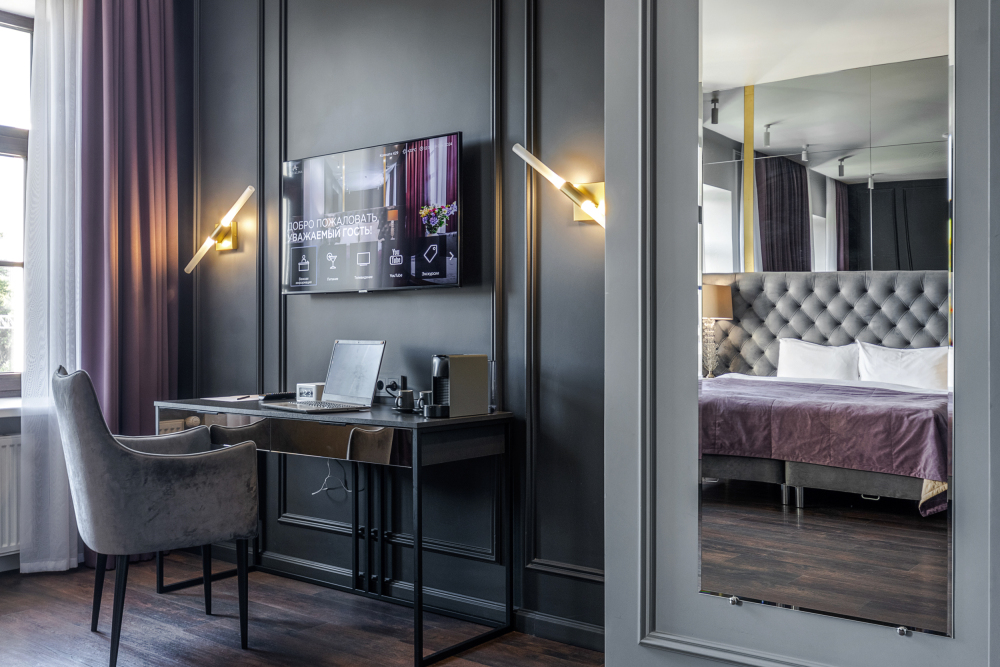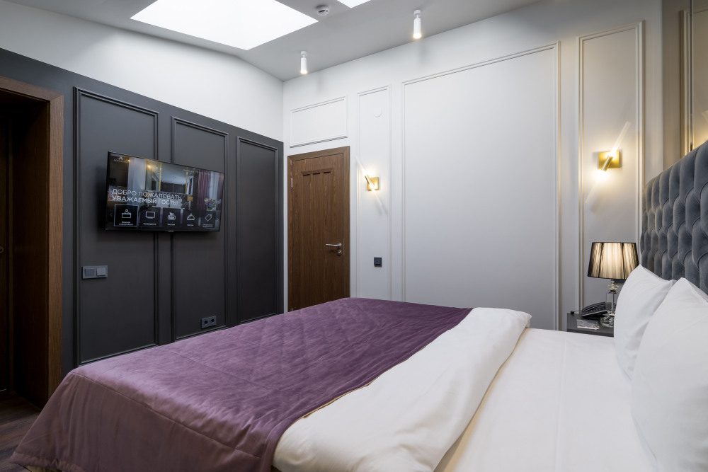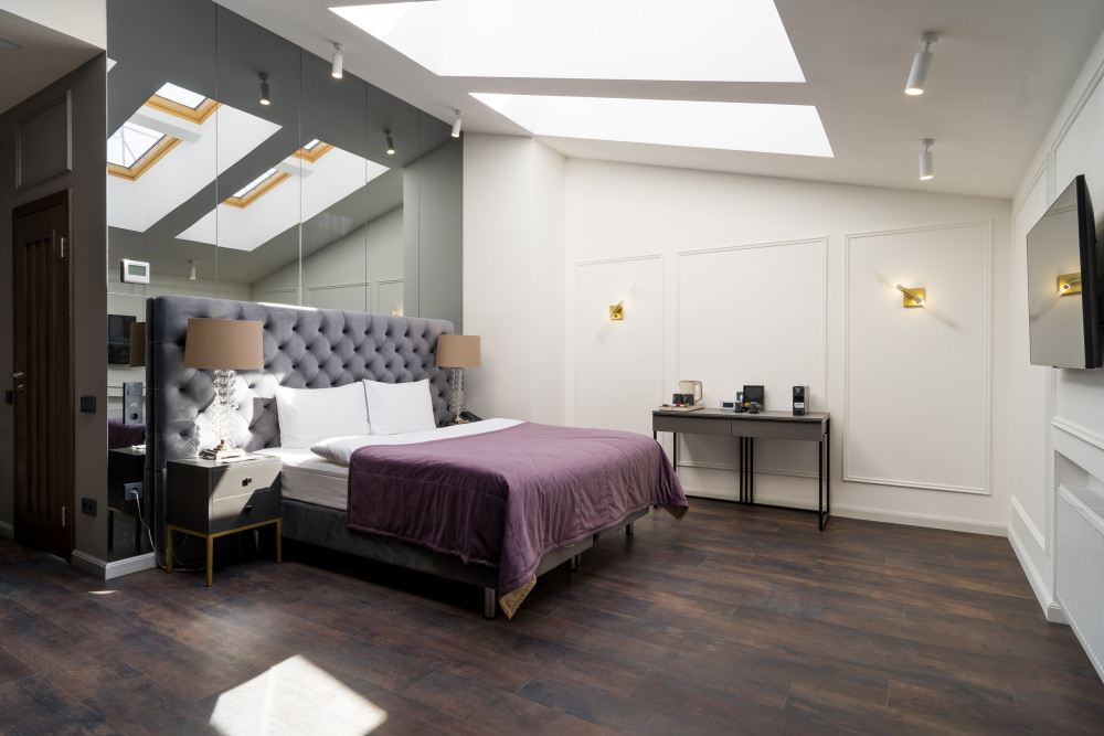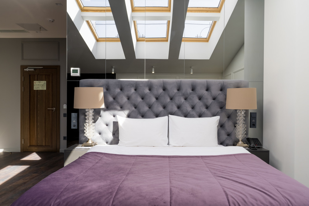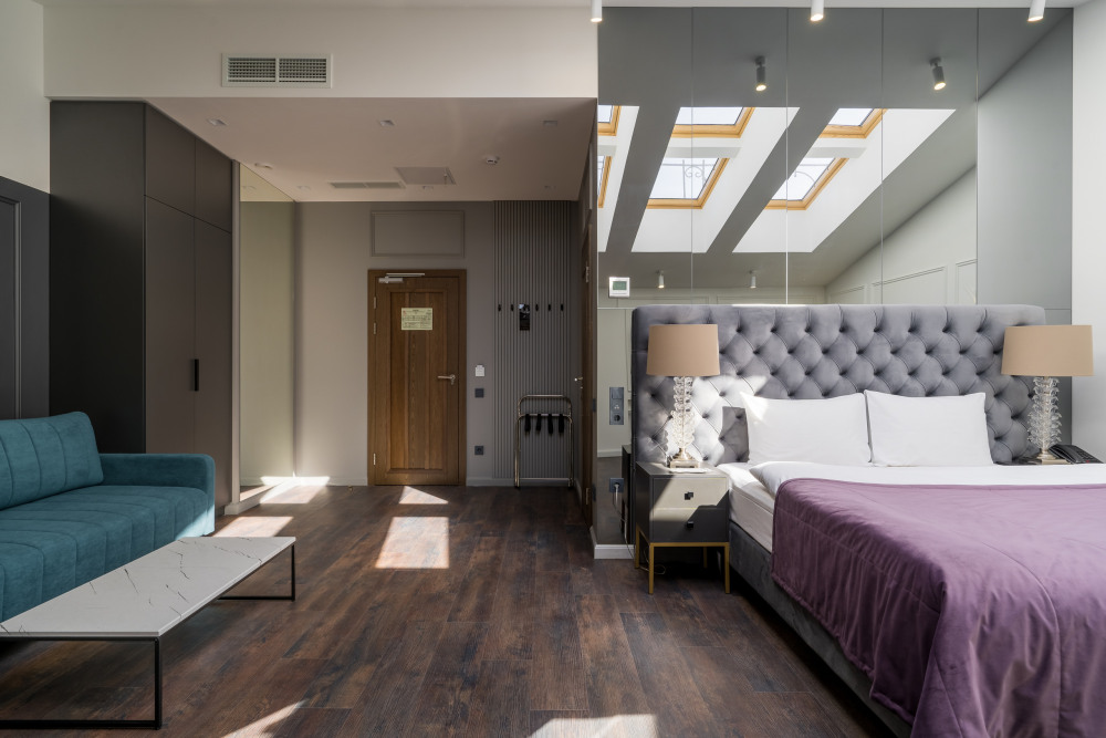 В отеле предусмотрен эксклюзивный номер премиальной категории «Мансардный Люкс», площадью 56 кв.м., расположенный на 5 (последнем) этаже отеля.