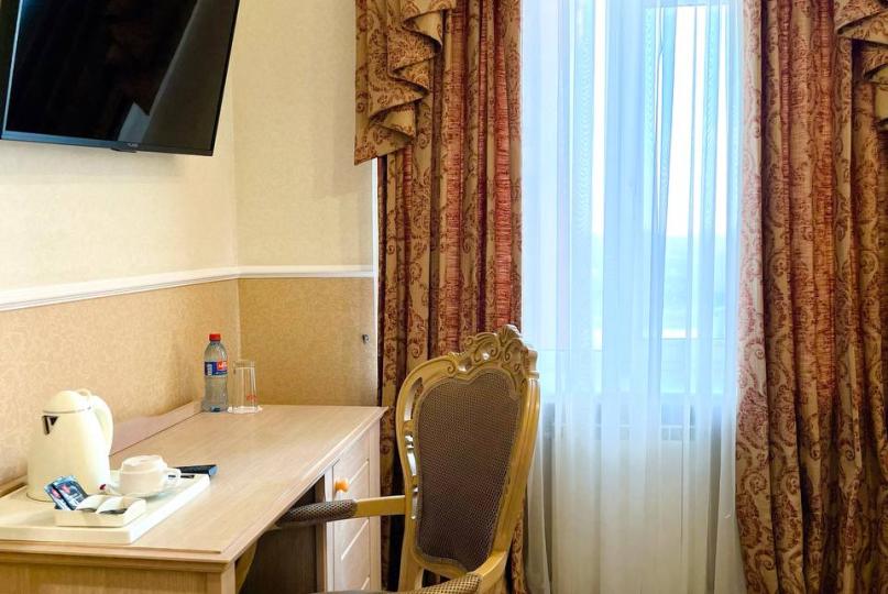 Современные номера с видом на реку Дон. Идеально подходят для проживания 1 человека. Номера оснащены одной полуторноспальной кроватью, прикроватной тумбочкой, рабочим столом, телевидением, высокоскоростным доступом к сети Интернет, системой индивидуального климат-контроля, сейфом, чайной станцией, водой, косметическими принадлежностями, халатом и тапочками.