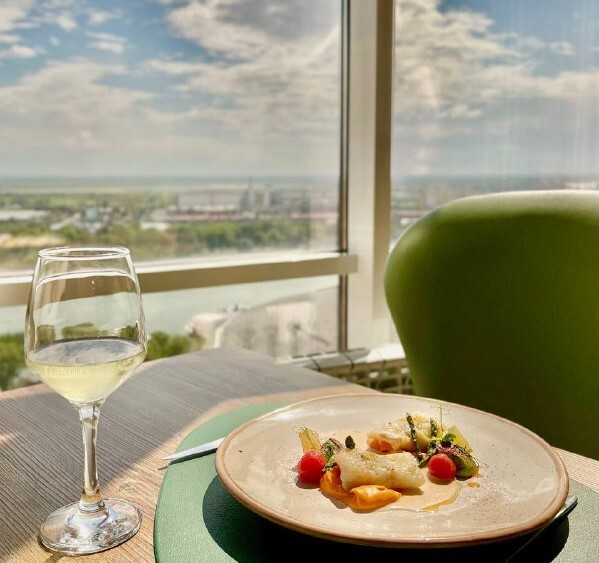 При отеле есть панорамный ресторан на 12 этаже.