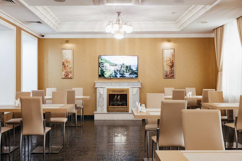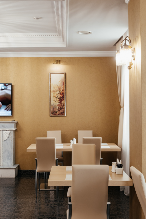 Интерьер ресторана оформлен с учетом традиционного стиля, создавая уютную обстановку для дружеских встреч и семейных праздников. Профессиональный персонал позаботится о каждом госте, обеспечивая высокий уровень сервиса для полного комфортного пребывания.