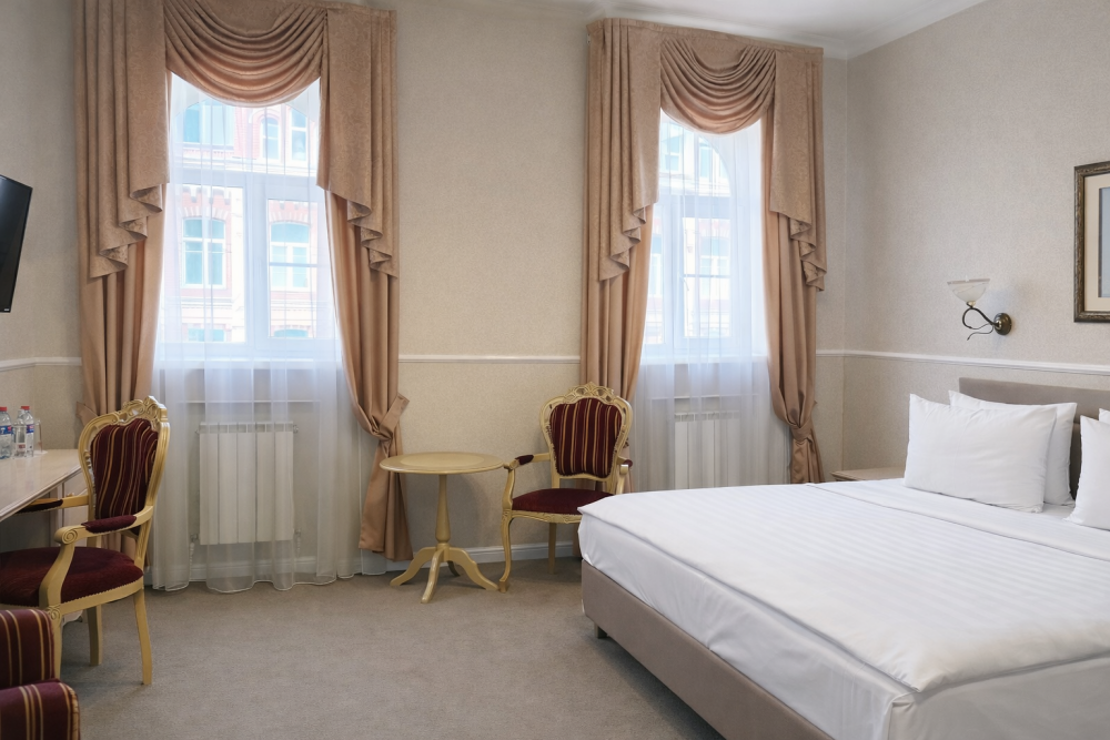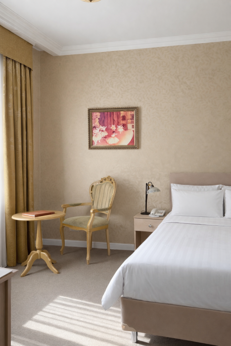 К Вашим услугам в гостинице 31 номер различных категорий: люкс, джуниор сюит, номера первой категории. Номера располагают всем необходимым для комфортного проживания: рабочее место, спальный гарнитур, ванная комната с душем или ванной, сейф, мини-бар, кабельное телевидение, Wi-Fi.
