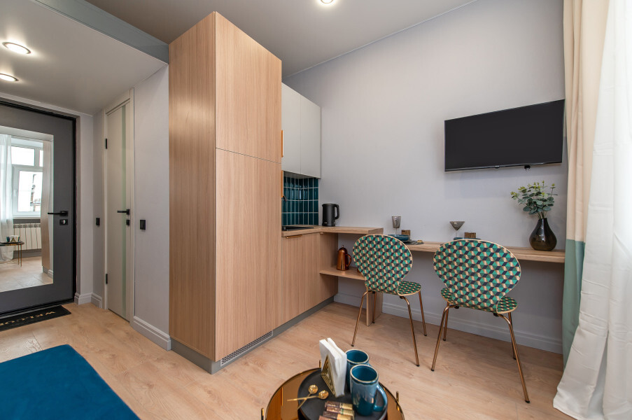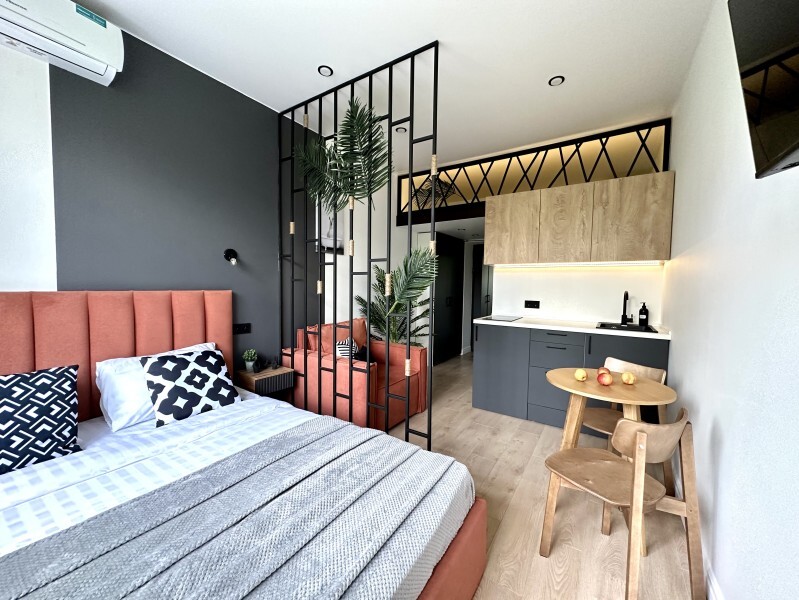 Дизайнерские апартаменты для тех, кто ценит тишину и комфорт. Предлагаются приятные квартиры кухонной зоной или двумя этажами с французскими окнами. Чтобы отдых прошел хорошо гостям доступна мебель, ванная комната, кондиционер, ЖК-телевизор с кабельными каналами, а также Wi-Fi. Следуя концепции дизайн-отеля номера обладают идентичными характеристиками, но могут отличаться дизайнерскими решениями.